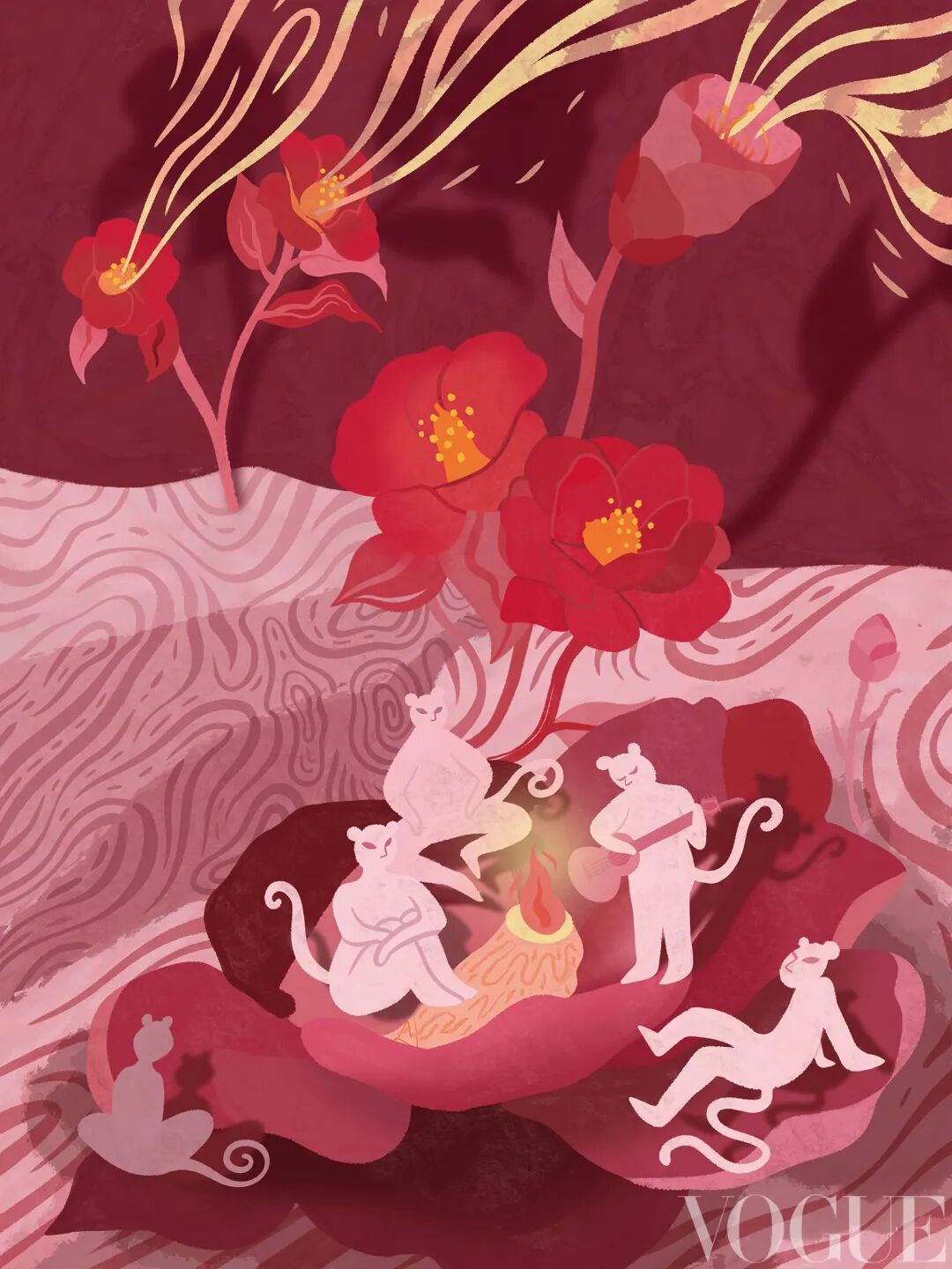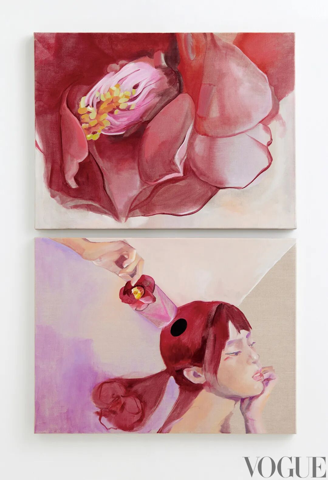 当我们与艺术家及来自纽约视觉艺术学院的学生们探寻恒久之道,他们相信自然具有包容、坚韧且强大的治愈能力,能带来永恒的创造灵感。 杜蒙不是一个习惯强烈表达的艺术家。在她那些柔软、唯美的创作中,关于人类的情感和共鸣能够温和地触达观者的内心,带着有温度的力量;就像生长在湿润的土地上的山茶花,表面柔弱,内里却有着坚韧的生命力。 《重逢》 回收玻璃,镜子碎片 15×15×1cm 杜蒙的许多作品中都出现过花,大多来源于过去一个个记忆中的场景。她曾经在一次创作中雕刻了朵朵海棠花,她说,记得小时候她会在春天海棠盛开的时候站在树下,看着海棠落满地。 杜蒙以前也种过山茶花。适应了南方潮湿环境的山茶花,来到干燥的北京后水土不服,于是种了一次以后她就放弃了。“没必要这样荼毒它。不过它是冬天开放,冷一点才会开,所以我觉得还挺特别的,跟其他的植物拧着来。”因此,当她看到源于我们这期以红山茶花为灵感元素的“恒久绽放”创作主题时,最初的构思就是这样的一个场景:一个代表着盛放的山茶花的红色色块,完整地掉落,静静地浮于水中。 疫情这段时间,本就对社交需求很低的杜蒙,顺势减少了和他人的接触。“前一阵连微博都卸载了,我是个共情能力很强的人,看到太多新闻自己也难受。”拥有了更多个人时间的她,将自己交还给了自然之物。“我发现植物确实是会传递给你一些生命力和希望。”每天傍晚在工作室做完作品,她会吹着黄昏时刚刚变得不那么热的微风,在院子里捣鼓自己的小花园,浇浇花,施施肥,也了解了更多关于自然学科的知识。在这件关于山茶花的作品的创作中,杜蒙就对山茶花的花型产生了兴趣:山茶花重瓣的几何结构带来的对称美令她着迷,她希望可以在自己的作品中表现这样的美;于是,使用起来更加灵活自由的玻璃碎片成为了她的创作材料。她笑称自己的家像收废品的,堆满了各种质感的玻璃碎片,而这些暂时存放在“回收站”的碎片,总有一天会在另一件作品中“重生”。这一次,她选择了不同质感、深浅、透明度的红色玻璃碎片,将花瓣以更加几何化的形状呈现,并在纵向上多层次叠加玻璃碎片,以呈现山茶花的重瓣之美。“玻璃的颜色会叠加,可以从上层透下去看到底下的层;同时也可以隐藏很锋利的断面,削弱玻璃带来的锐利的感觉,符合山茶花柔软的美感。” 之前作品留下的旧料,成为了这次创作的主角。 除了透明的玻璃,杜蒙还选中了一些镜子的碎片。在玻璃带来的层次之外,她希望这些镜子的碎片可以为这朵“山茶花”再增加一个层次。“它通过反射可以呈现周围红色的玻璃,站在镜子外面可以看到镜子反射出来的那个平行世界的镜像。”镜子也曾出现在杜蒙其他的作品中,对她来说,试图重现的那些过去的记忆,也是一面“反射”未来的镜子。“我觉得体会和了解过去的时间节点当中发生的一些事情之后,不管是对未来更好地想象,还是更好地去规划,都是有帮助的。”疫情之下,来自自然的力量又一次改变了人类世界,就像它在过去几千年、几万年来时不时做的那样;而这一次,杜蒙对于许多人仍然以“上帝”的身份践踏其他生灵感到失望和愤怒;当然,她也看到很多人正在重拾对于自然之物的好奇和喜爱,一条上海居民分享的小区内的植物多样性大赏让她兴趣盎然。“我觉得人需要对其他的生物和大自然怀有敬畏之情。”更多地接近、了解自然,让她看到,人类在地球上是多么渺小却又多么自信的一种生物;她说,敬畏自然或许是让这个世界重回正轨的一种可能。 经过熔炼,旧料以全新的面貌展现在大家面前。 去年,杜蒙花园里的一棵已经被判“死刑”的木槿,呈现出一个小小的奇迹。“它五月份都没有动静,后来我观察,发现它长芽的地方冒了一个缝儿,缝里边有绿色。”于是她将木槿从地里移植到了花坛里,悉心浇水;七月,其他花已经进入盛放期,这株木槿也终于开始冒芽。“它真的挺沉得住气的。就很神奇,你觉得它可能已经死了,但其实在地下你看不见的部分它还是活着的。”她被这样的植物深深吸引:北方的冬天,它们像是被剃了“平头”,看似死亡,却在更深的地方积蓄能量,等待春天的重生。而在南方氤氲着水雾的土地上,一株株看似柔弱的山茶花,也以同样的生存之道度过一个个春夏秋冬;花朵在极盛的那一刻戛然落下,而这不是结束,只是另一次生生不息的自我革新的开始。 在陈问村的成长经历中,自然力量与女性坚韧之美让他拥有不断前行和创新的力量。 他借助这些智慧能量,重构汉字“永”,赋予它如同红色山茶花般张扬而具平衡美感的 生命力量,同时运用综合媒介绘画和材料拼贴创造了一朵不败的红色山茶花。 90后艺术家陈问村经过一系列艺术性拆解与发想联结创作了两件精神内核一脉相承而形式不同的艺术作品。首先,结合红山茶花的形态和汉字“永”,创作了多媒体艺术作品《红是永恒的颜色》(Red is the colour of forever)。“‘永’字除了字面意思恒久长存之外,它的结构也是独特的,”陈问村阐释道,“‘永’字包含了中文书写体的八个基本笔画,而这八种笔划如同基因序列的排布与组合,成为传承中华文明、数量浩瀚的中文书写字。”因此,他把“永”字的八笔拆分开放入书法练习的方格纸中,通过多媒体动画的方式,让不同的笔画漂浮在方格中,各自旋转,相互重叠