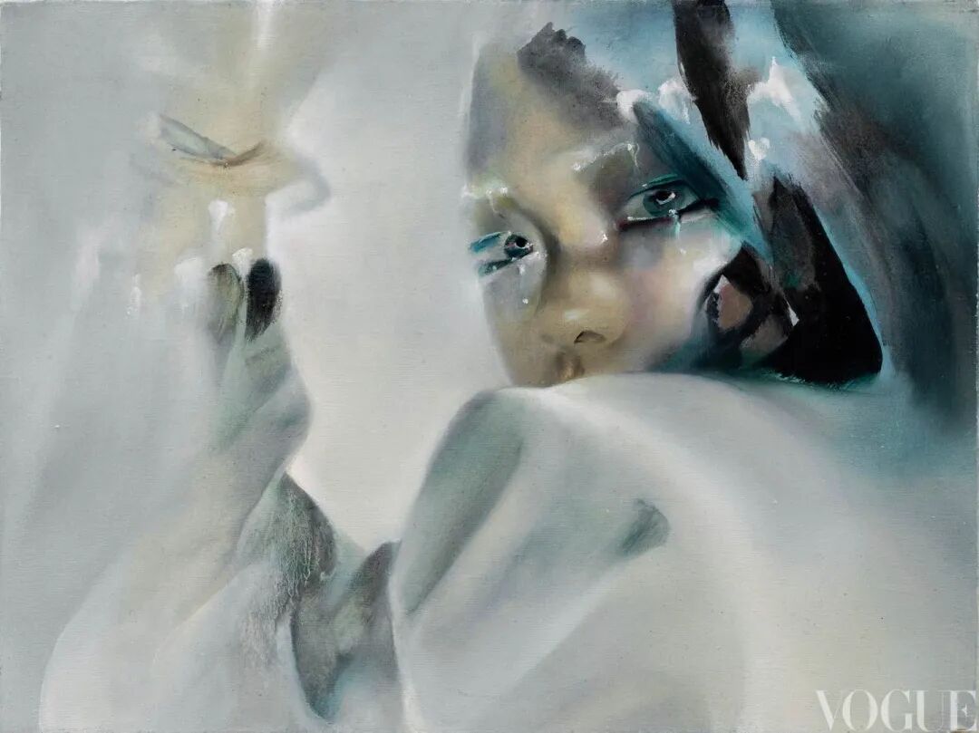 撰文:Ellen Yang 蓝色之于宋琨,是最接近灵魂的色彩。她潜入海水,在层次多变与复杂的蓝色里体会情绪的流动与意识的折射。无论鲛人还是赛博,宋琨对女性身体的描摹都存在两种极端:原始与未来,自然与都市,玄幻与科幻,在变化的蓝色里回归灵魂深处,净化,再生。 《幻觉自画像》,布面 油画,40×30cm 图片由艺术家本人提供 感谢:贝浩登画廊PERROTIN Gallery 有人的迥异个性,亦有动物性的肉身,这是宋琨最初对泛灵族产生兴趣,并着手进行“基因重组”的起因,而“泛灵净界”这个概念,始于她在2015年底举办的“阿修罗净界”个展,其系列作品由油画、装置及氛围音乐和影像构成。作为佛教“六道”之一,阿修罗本就是半人半神的存在,正义,个性真实,充满反抗精神,在当代语境中曾被反复诠释,但宋琨创造的“泛灵族”并不拘泥于传统“万物有灵”的一元论本旨,在今天的现实中宋 琨创造性地融入了真实的 生活,自己的情感。伴随当代的城市变迁,受艺术创造力本能的驱使,她不断塑造各种泛灵族形象和生存片段,结合她喜欢的亚文化与佛教元素,像一个不断发展变化的结晶体,重新演绎东方琉璃净土,展现“自性发光,超越人类想象”,心身灵一体的纯净与自在。 2021年,宋琨举办个展 “泛灵净界 鲛人泣珠”,她开始更多地关注女性的“身体”以及“现实生存经验”。鲛人,出自古代志怪小说集《搜神记》:“南海之外有鲛人,水居如鱼,不废织绩。其眼泣,则能出珠。”有别于西方神话中需要付出巨大牺牲才能上岸行走的美人鱼,中国鲛人水陆双栖,有着超乎寻常的生存技艺,能织就入水不湿的龙绡,可以自由地恋爱、生存、报答恩人,无需为爱殉道。在她的MV影像作品《鲛人泣珠》(2021)中,宋琨创作了温柔的美人鱼女性和都市赛博女歌姬两种身份,用当代艺术非常规的叙事方式,结合自然主义和科幻元素,制作了这个动画MV,宋琨不喜欢冗长的理论和表述,更喜欢以写歌词的方式来表现,《鲛人泣珠》用流行音乐对唱的方式说出大部分当代女性的生活感受与情感,“被当作稀有产品冻在高端展示柜里,来——把变身游戏,当爱恨储存记忆,还你肉身纯净,下一个合成体,Save us......区块数据隔离的海,delete他,delete她,错位巨浪,还没习惯,就让我们,分离 。” “如果不是因为疫情,我每年都会花一段时间去海边,近距离接触海洋。一开始是浮潜,然后是深潜,在海里待的时间越长就越 上瘾,有人说潜水是一种‘蓝色鸦片’,其实是精神深层的一种归属感。地球大部分是海洋,我们身体里大部分也是水,这个比重其实我们经常会忽略。我沉迷于在无重力的状态下观察海洋生物的肢体和动作,会有些通感。”在宋琨眼中,章鱼、水母、蛇这类软体生物是柔软、魅惑、性感与危险的复合体,这种致命的美本身即具有极强的可塑性。“当我浸没在海水中,身体仿佛消失,潜意识也与整个海洋融合在一起。蓝色是我认为最接近灵魂的一种颜色,而海的蓝是很复杂的,从浅层透明发光的蓝,到深海里接近暗黑的蓝,光线在海水中折射出的不仅仅是色彩,还有我的情绪和体验。” 宋琨的作品风格难以被轻易归类和贴标签,她很少运用纯度较高、符号化的纯色,如群青、天蓝,反而做了很多减色的处理,“我喜欢中间不可言说的部分。”透明微妙变幻的蓝色,有时与中国宋瓷的色调和质感有些微相似。她的作品既有极度原始和自然的一面,又透露出当代都市人被科技与数据控制裹挟的自省,往往呈现出两种极端融合的结果。她常以身边的朋友为蓝本,近期经常以赛博形象来探索人类身体的未知属性,《赛博歌姬-朱婧汐》就是典型的一例。她所描摹的赛博总是表情空洞,但又显得那么专注投入,有人类的性感和忧伤,肌肤介于金属和人类肌肤之间的质感,四肢纤长,关节处却如同无生命的玩偶,肢体呈现不完整的状态或者以切割与错位的画面形式出现。“当我们的生活越来越秩序化,所谓的工业文明、网络科技、虚拟现实,那些数据化的管理和法则,受利益最大化的驱动,看起来道貌岸然是规范,实际在和人类的肉体本能意识不断对抗。我们被要求越来越赛博化,为了符合生产需要,势必要降低感性,或者说作为生物的自然属性,赛博和自然人是理性和感性极端分裂的两个端口,我感兴趣里面的冲突和不断衍变的新的人格与混合身份。” 作为本土“整体艺术”(Gesamtkunstwerk)的实践者,宋琨的创作以绘画为主,同时结合音乐现场、 MV、装置等多种表现形式。其实她在进行创作之前,很少有过于概念化的设定,“我觉得自己属于发散型思维的创作者,也就是人们常说的反逻辑思维。我 经常由点状思维出发,不太会去想这些点最终会形成一个什么样的结果。我有一个大的剧本,它像一个不规则的结晶体,而不是一根线,我知道当下真实的生存感觉,也只想对自己的感受忠诚,概念和规则干扰我的感觉和最深的情感,就得暂时让位 。还有就是好奇心和想象力, 我对未知的我无法判断的逻辑和人性感兴趣,想探索这些,而不是做一个复制品。”