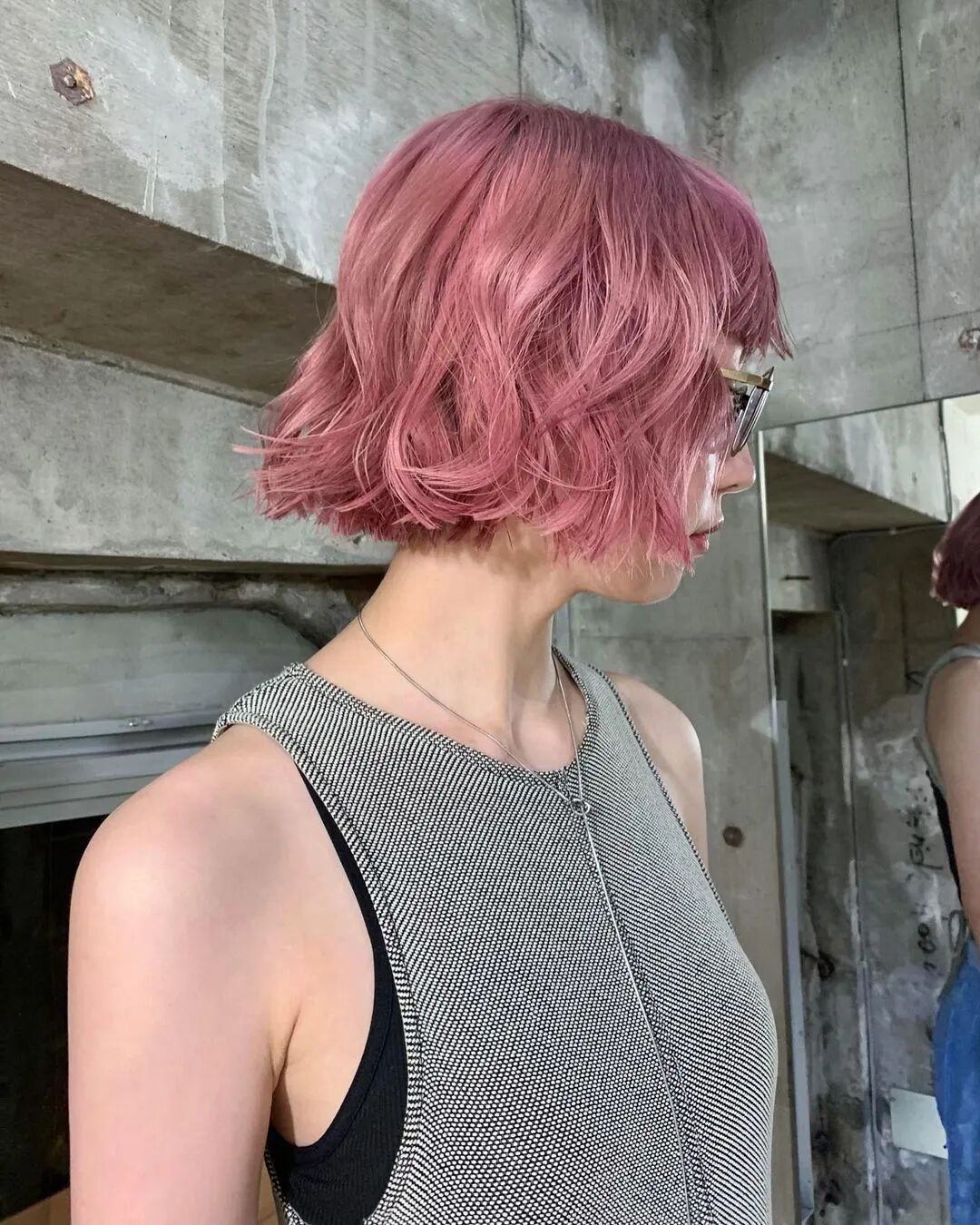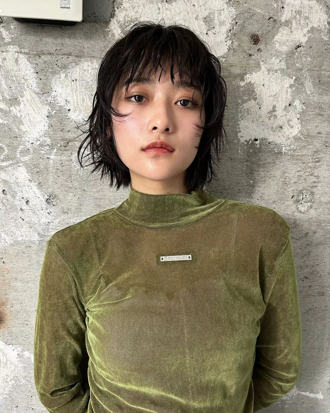 还有一款高层次短发叫做Shaggy Haircut(微乱层次)小松菜奈之前剪过,配上粉调橙色染发,在有少年感的同时,增添一点中性的甜味。