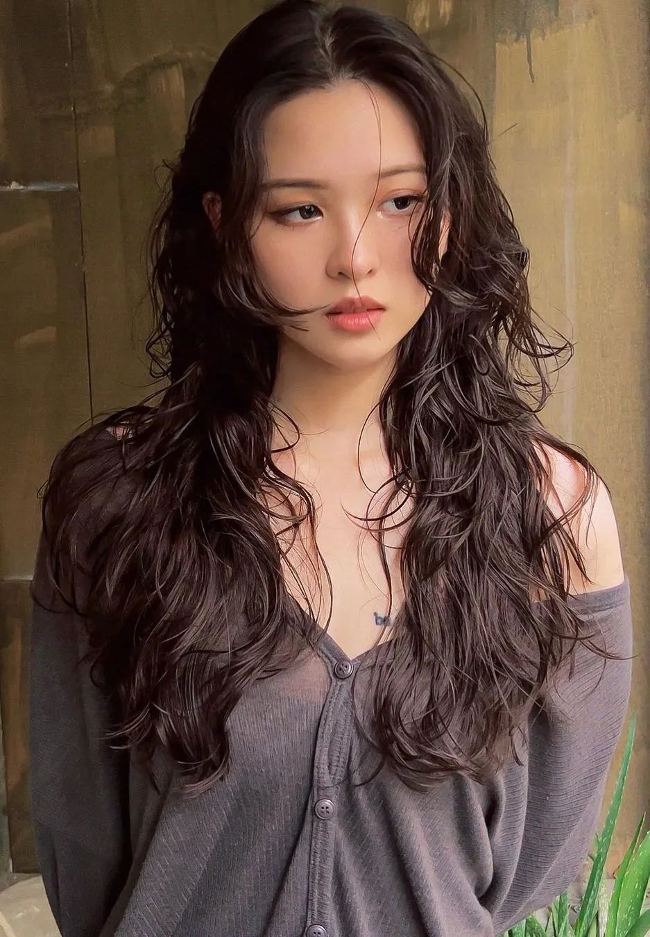 微卷发型对方圆脸型的包容度很高,基本上不容易出错,不但能够塑造氛围,还能和脸型无缝衔接,视觉上突出五官特点。