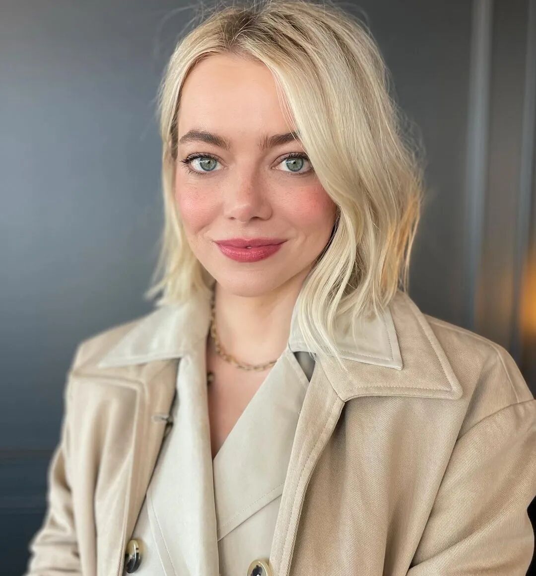 同样的方法Emma Stone的化妆师Rachel Goodwin也是这么给方圆脸的她画的。