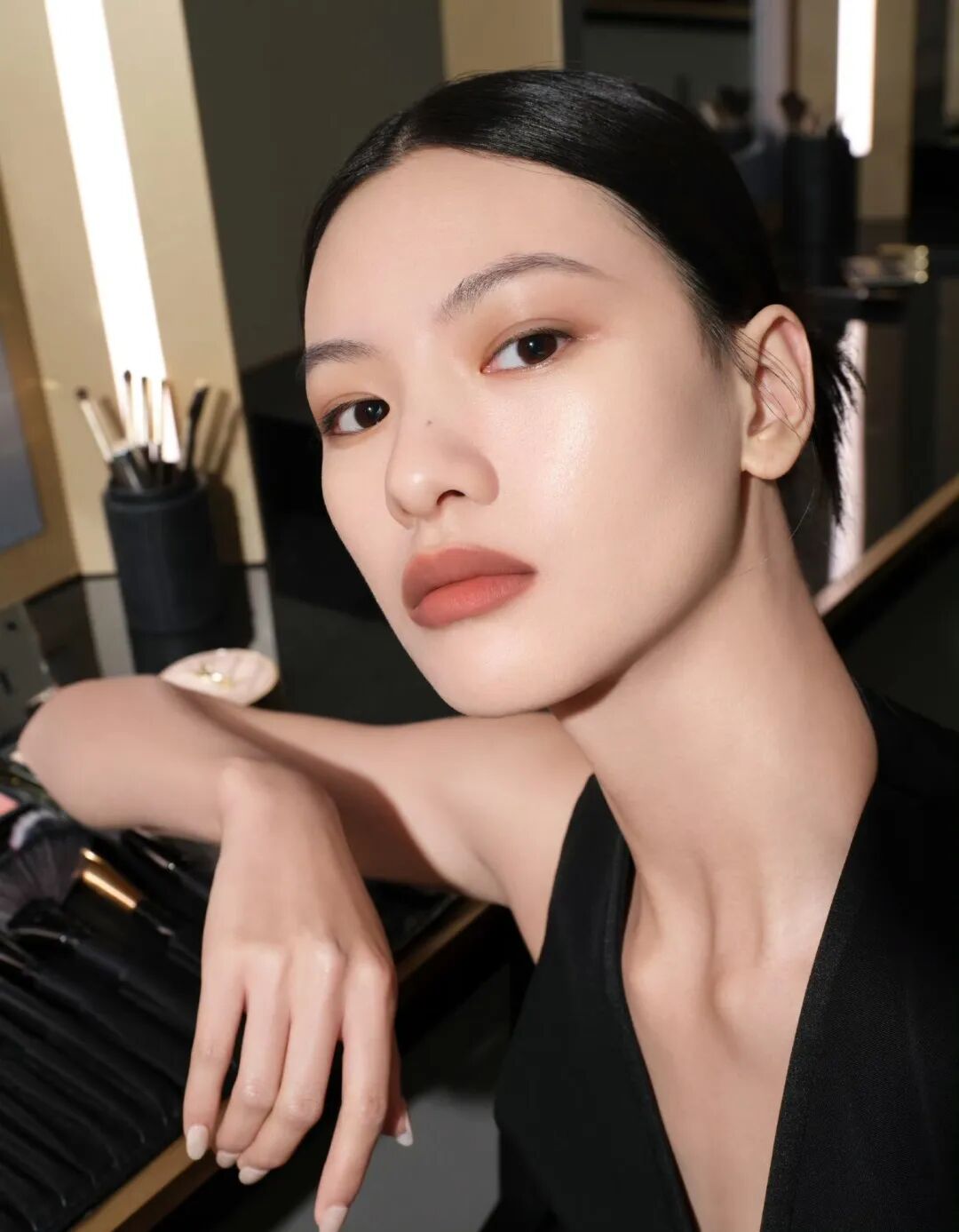 当场合所需时,细致匀净的半哑光肌会比全哑光更适合方圆脸型,首先不会让皮肤有种干燥假面感,其次微透的光泽也会让轮廓巧妙显现。