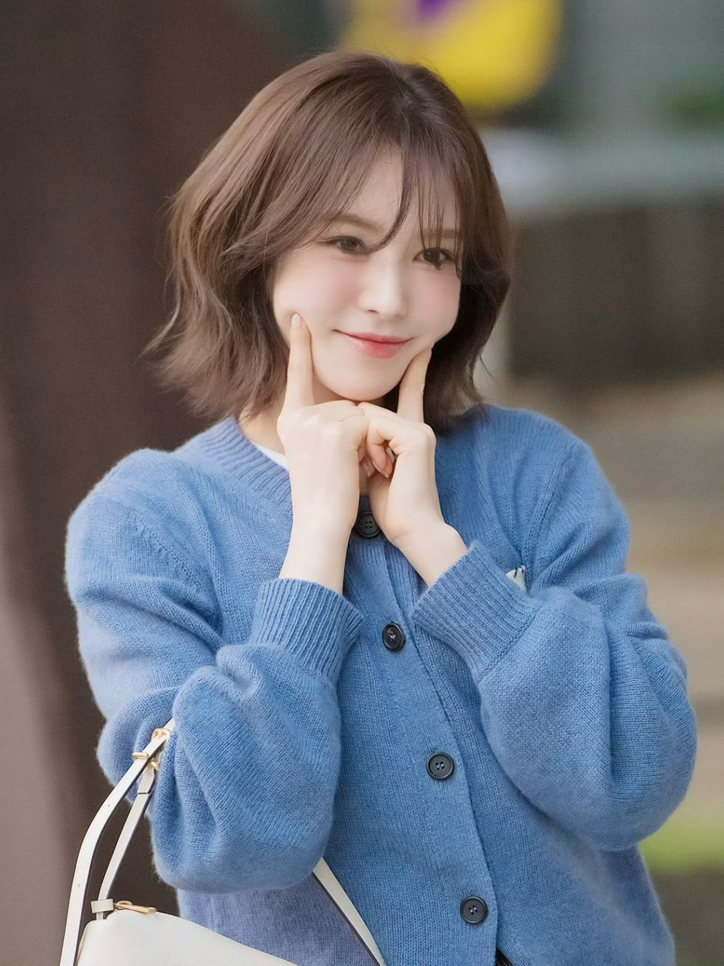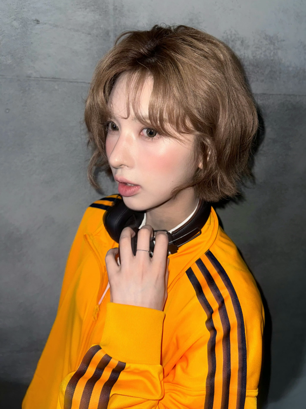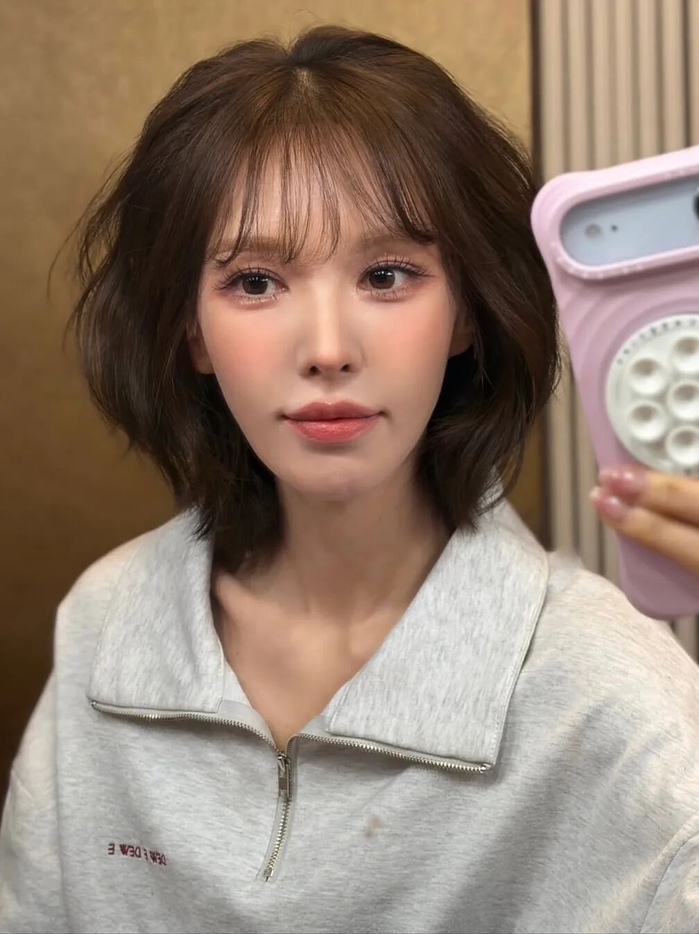 Wendy头高明的地方在于,它不是用头发去遮盖脸型,而是用错落有致的层次去“切割”面部留白。颧骨两侧的碎发能够轻柔地修饰面部边缘,而发尾的轻微内收则巧妙地包裹住略显宽大的下颌角。 因为整体发型充满了空气感,不会给面部带来任何沉闷的压迫,反而让整个人显得更加轻盈,五官也被衬托得更加精致立体。