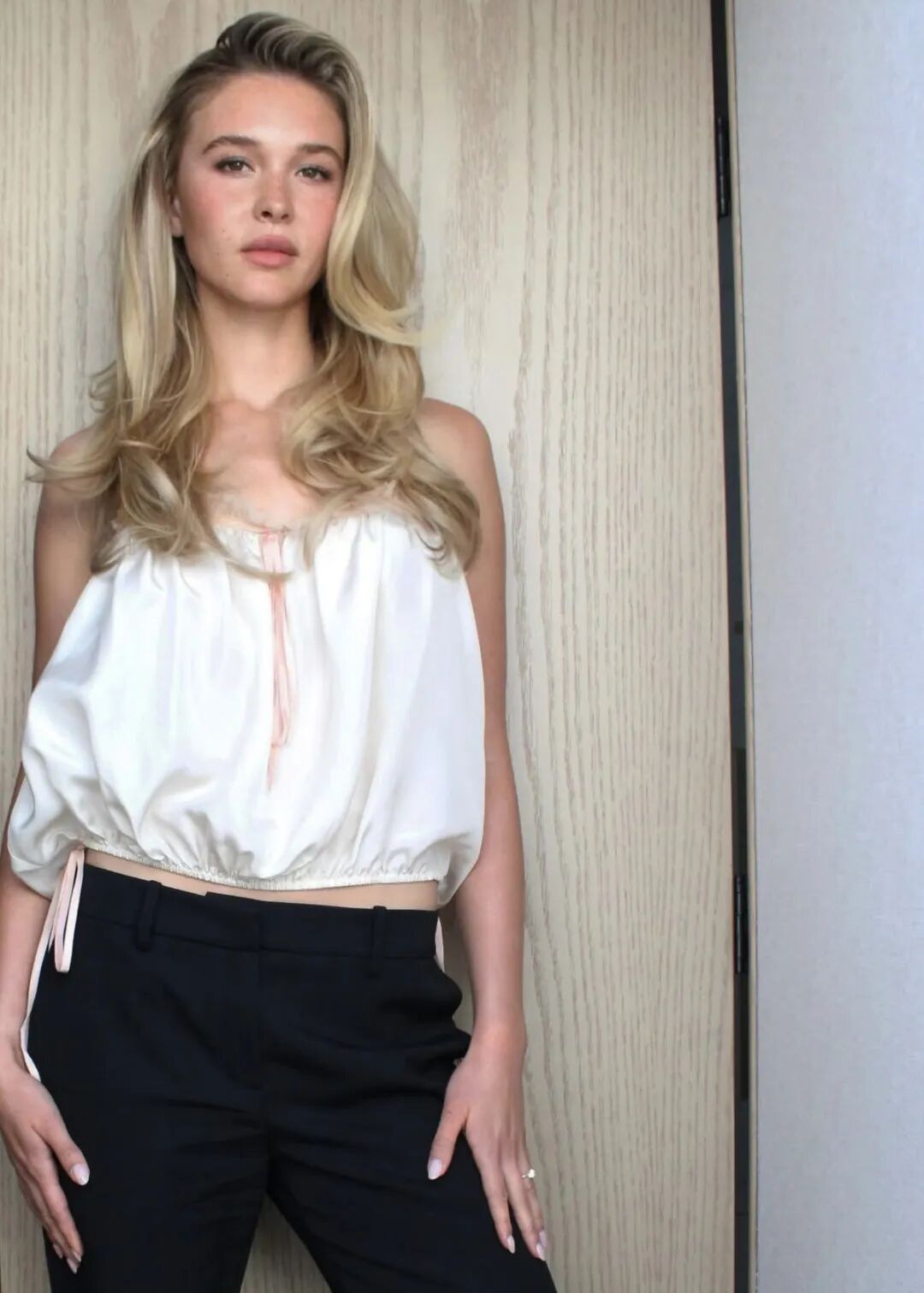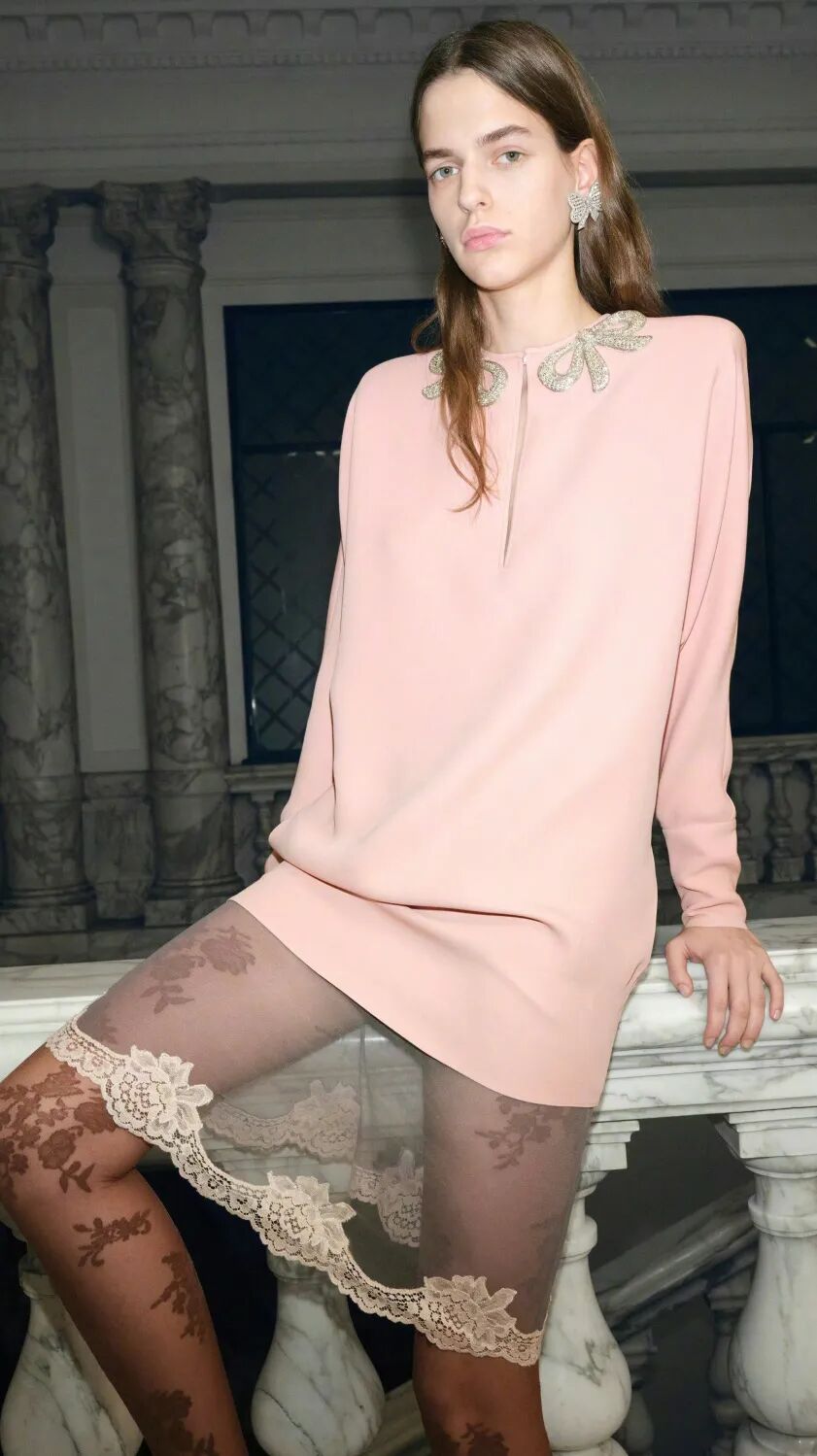 艾玛・斯通则把淡粉做成极简裸透感,几乎是原生甲的质感,和路易威登的简约流光礼服搭配,高级感藏在细节里。