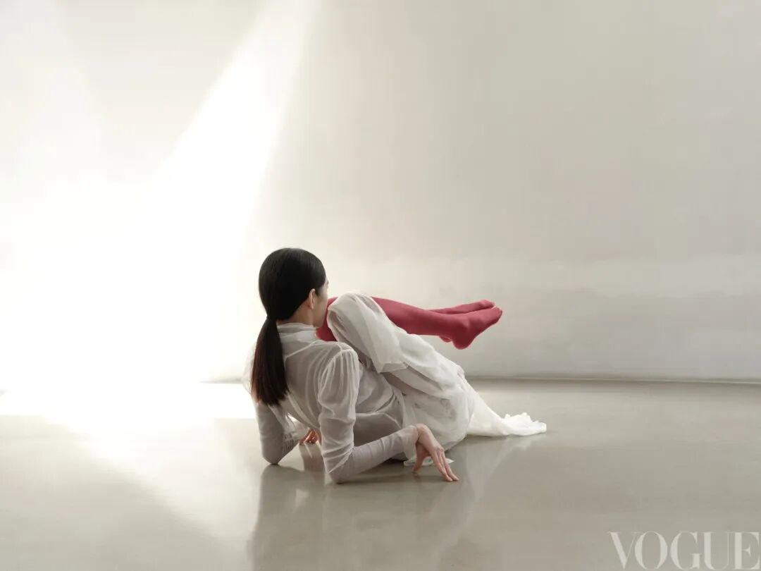 “我是不是被你看透了?”,这是应紫凌工作时经常听到的一句话。但对这种心理咨询师善于窥见人心的刻板印象,应紫凌倒觉得可以一笑带过。“这反倒是一个很好的渠道和窗口,让他人了解这个工作的特性和模式。”应紫凌对自己非常好奇,且一直处于观察他人的角度。能在《她的姿态肖像》创作中有机会被女性视角近距离观察,有一个更“她”者的角度了解自己,会是很难得的体验。应紫凌和戴露线下相处的时间是两天,但线上沟通断断续续持续了一个多月。戴露问了她很多问题,这种交谈让从事灵性工作的应紫凌感到充满能量。其间戴露问“什么样的人更愿意自我思考、反省?”,在两人大量的对话过程中,应紫凌想到了答案:“有浪漫主义精神的人”。不同于传统教与学的环节,应紫凌与戴露的创作更多是现场即兴配合。作为咨询师,她每天都要接收很多随机问题和对话,而基于所有的知识以及对过往经验的回应,就如同即兴舞蹈创作过程一样,是无意识的积累的表达。在应紫凌看来,这次舞蹈是一次自我解放的过程:在文字语言之外,对肢体的使用像是打开了一个新通道,是一次真诚的自我照见。她看到了这样一个自己:脆弱,勇敢,细腻,勤奋。在即兴创作的一个间隙,影棚现场的工作人员以及镜头、灯光依然围绕在两人身边,但是她与戴露进入了沉浸式的沟通空间。“我很享受这个只属于我和她的空间,因为我看到自己在自我解绑,将以前渴望被认可、要做到最完美的自己松开出来,只关注当下的我们。”在舞蹈的最后,应紫凌拥抱了自己,这个动作呼应了她所感受到的第一个瞬间:松绑,认可自己。通过这次创作,应紫凌更加确定了两件事情:1.她可以对自己更坚定,有能量鼓励更多人自信,不仅仅是女性;2.这个世界真美好,还有很多人愿意一起探索、创造。