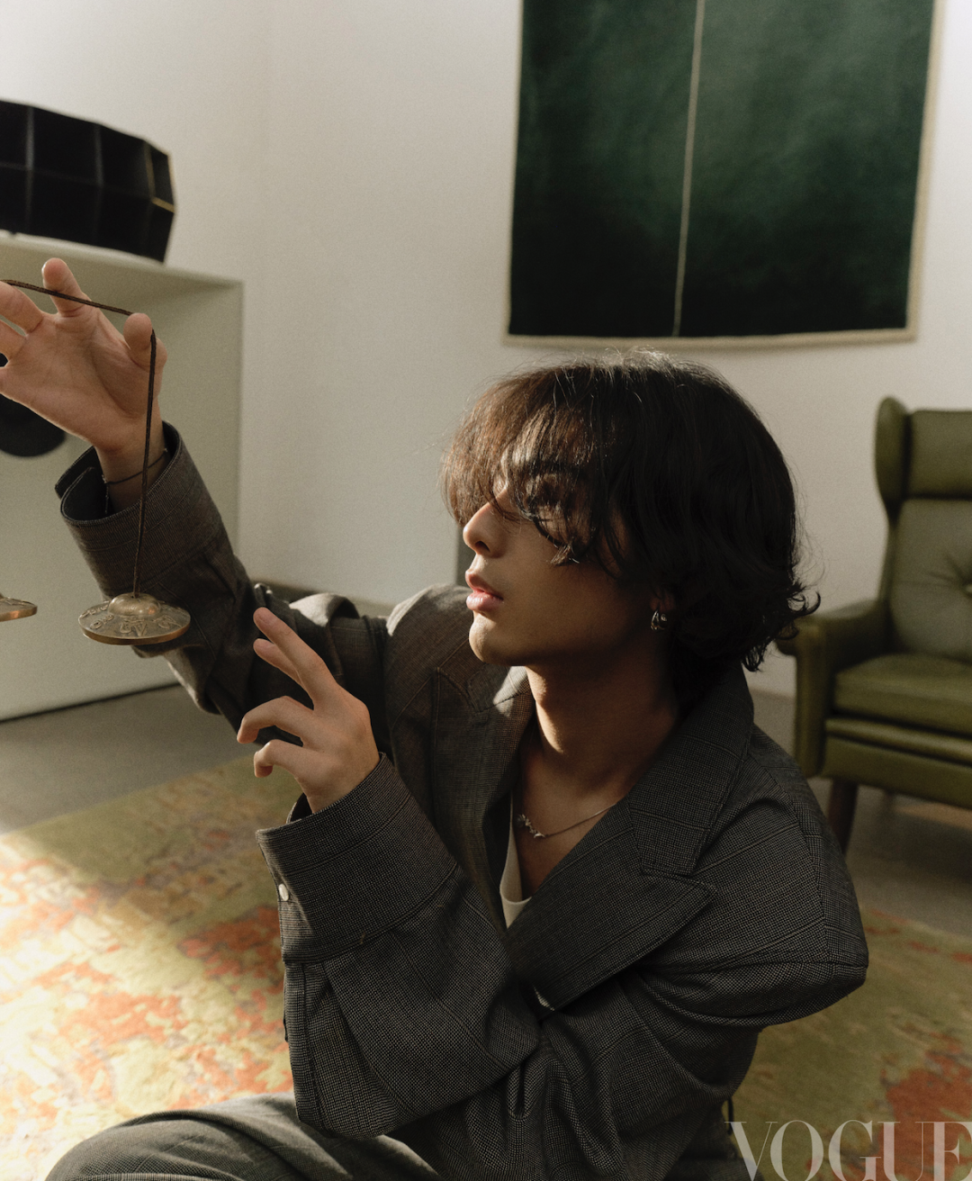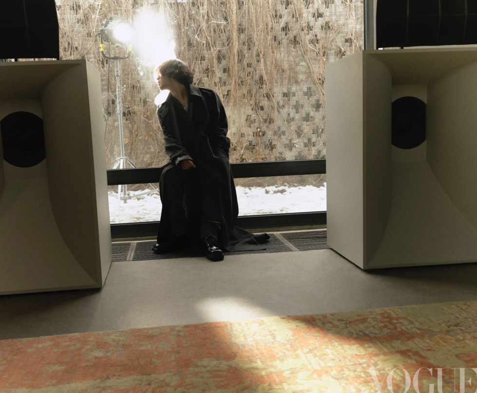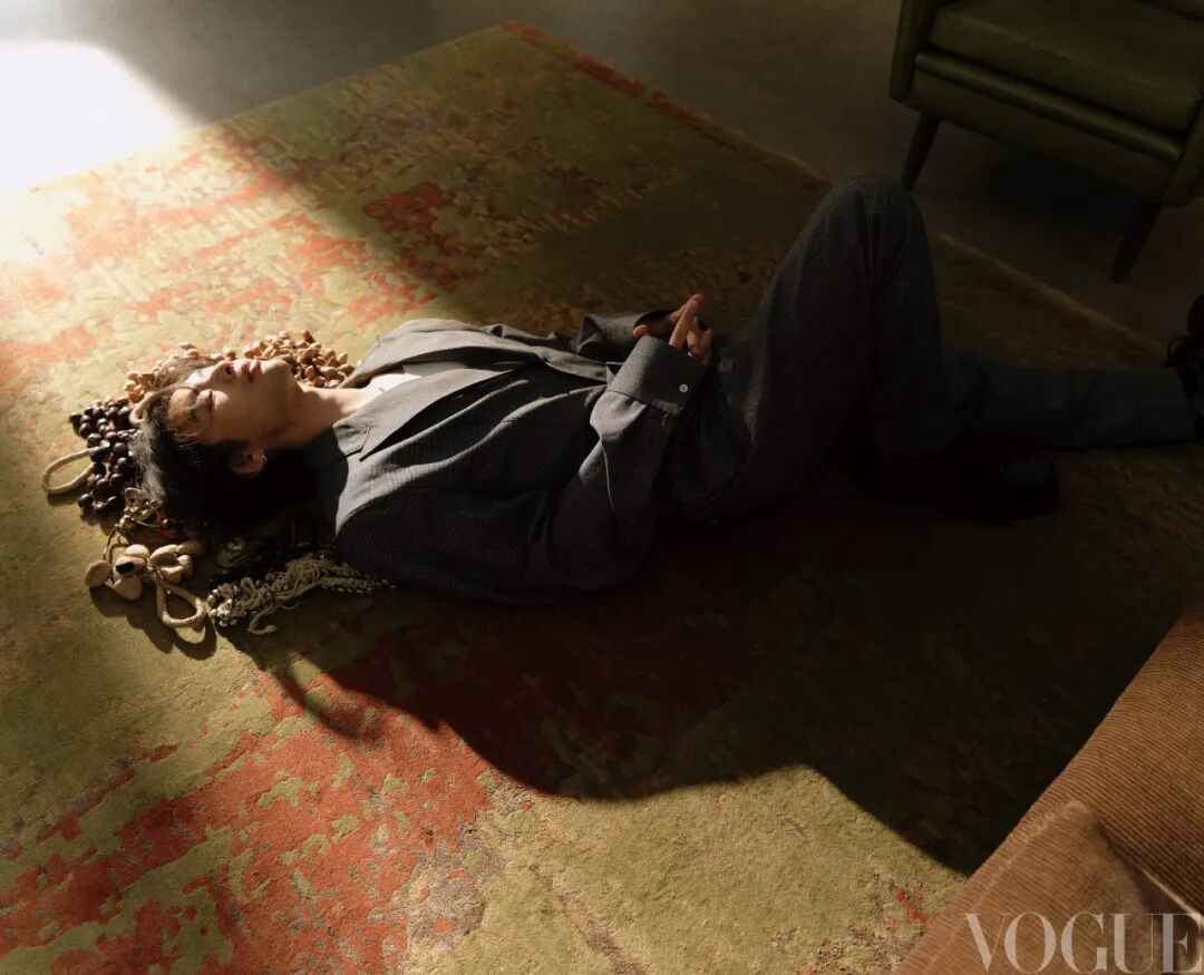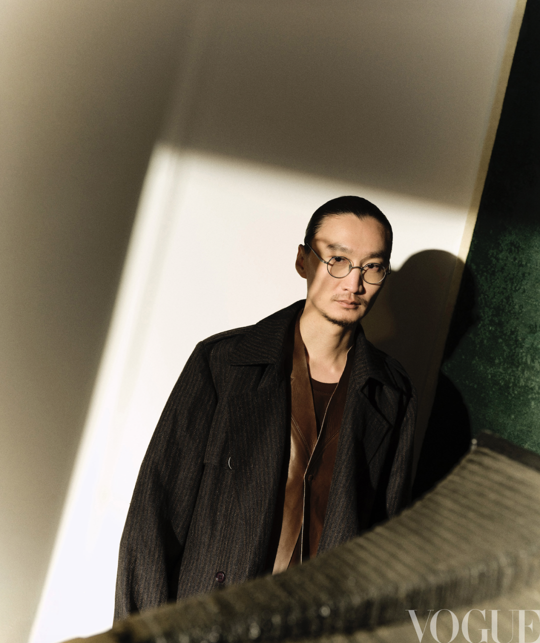 王晨淮:外套、上衣、长裤均为 Issey Miyake;T恤 Givenchy;鞋 Prada