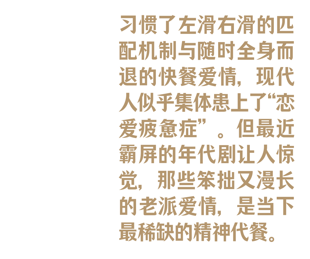 近两年的社交网络上,“爱情降级”成为了高频词。我们在交友软件上精准计算着投入产出比,一旦发现瑕疵便迅速撤退。然而,在这个情感选择看似无限丰富的时代,荧幕上却掀起了一股“年代剧回潮”。为什么科技越发达,我们越是对那些没有滤镜的“老派约会”上头?