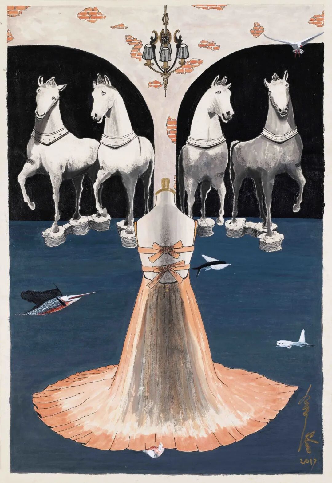 S公寓 2017年 纸本水笔丙烯 44.5x34.5cm