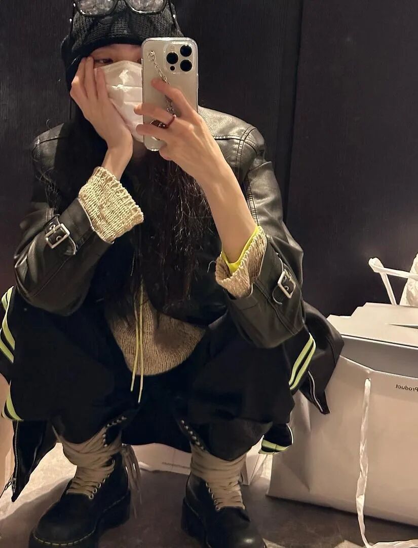 而她自己平常所喜欢的也是这类偏酷飒、暗黑的风格,日常私服也大多都是以黑色为主。