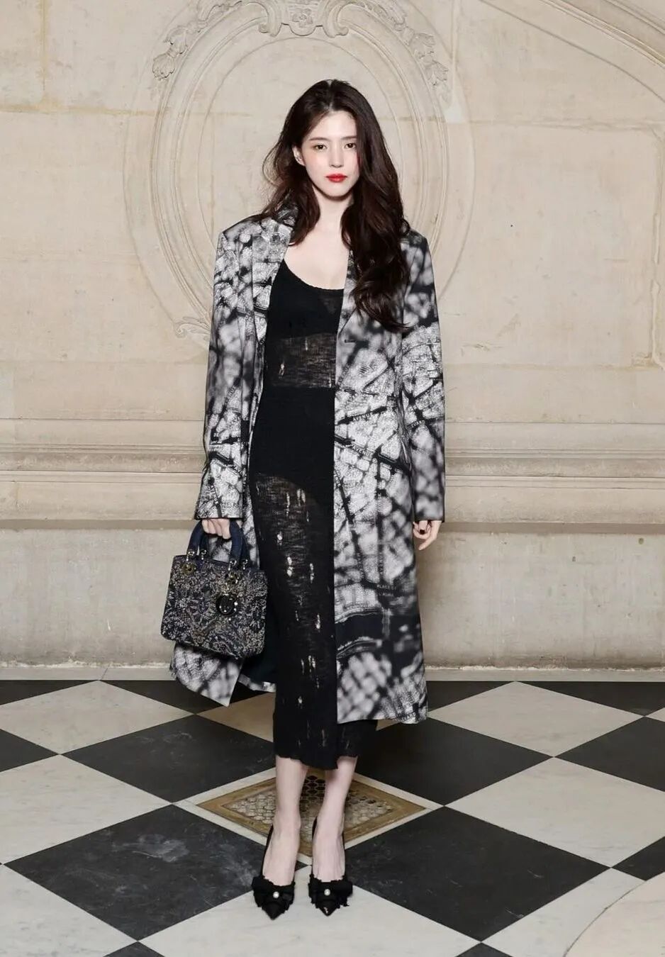 在前不久刚结束的巴黎高定周当中,出席迪奥2024春夏高订大秀现场的韩素希,再次美上热搜,身着花色大衣及破洞针织长裙状态极佳。