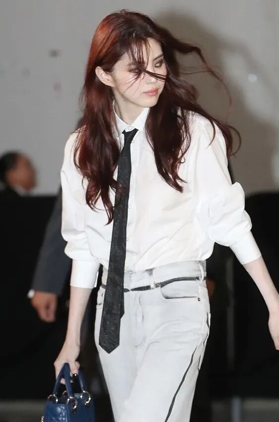 之前她在出席DIOR活动期间,甚至摆脱了常规造型思路,抛弃常规礼服,以衬衫领带装束搭配烟熏妆容亮相,更是一举带火了这种“恶女风”妆容。
