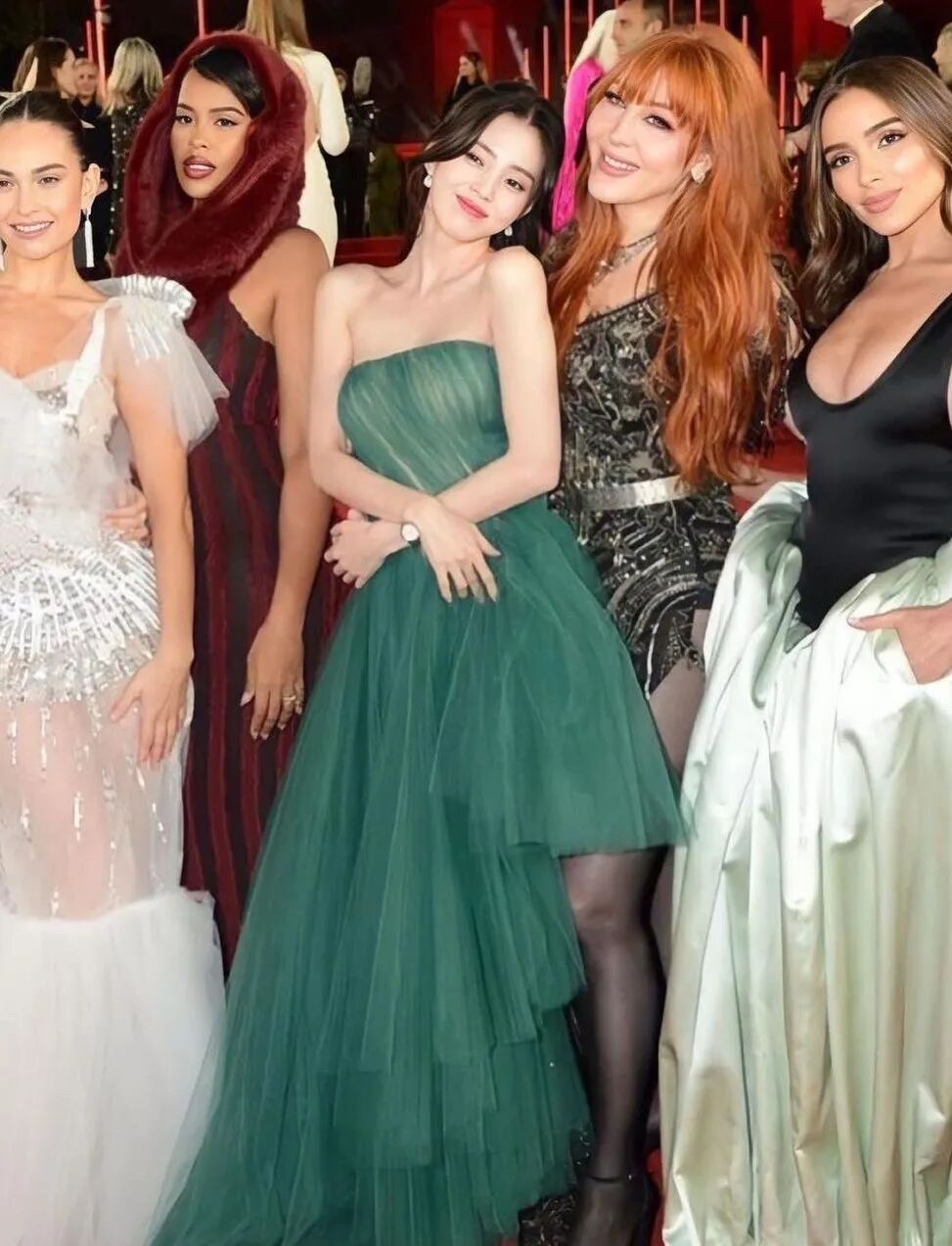 哪怕是出席一些国际时尚活动,她往往也能轻松抓住全场焦点。此前在出席英国时尚大奖期间,她就以这身绿色纱裙惊艳全场,哪怕站在人群中也是最吸睛的存在。