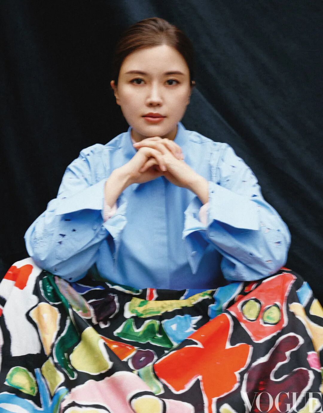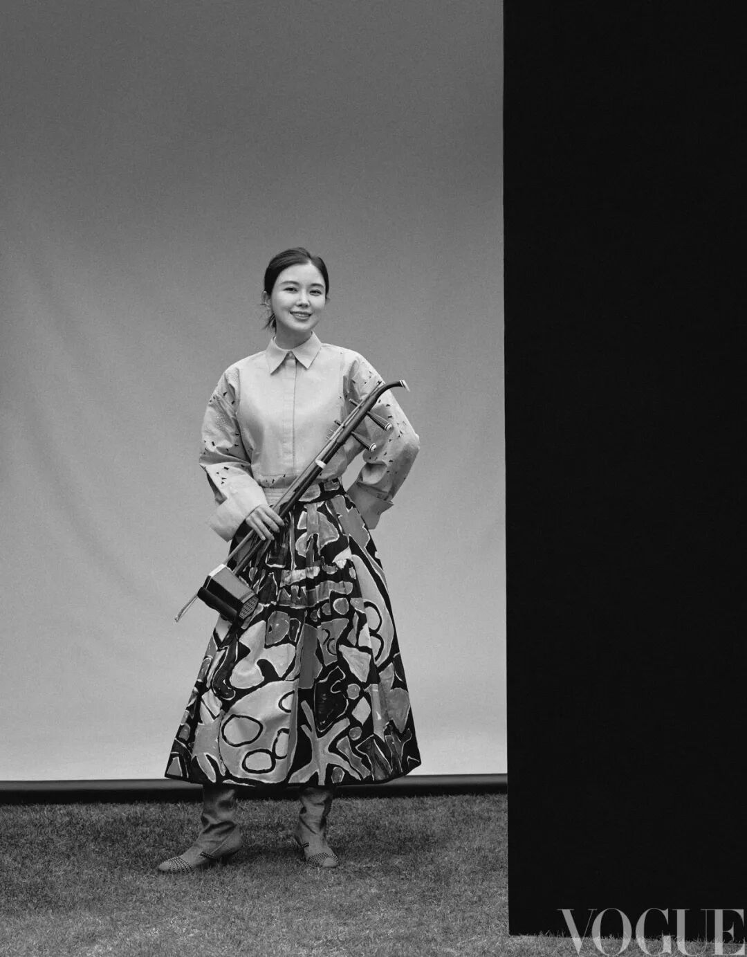 “一定要创作出好的作品。没有作品支撑,对演出形式的探索无从谈起。”陆轶文明白,西方古典乐成熟的记谱法、先进的理论及丰富的曲库,是民乐艺术家要借鉴的。尽管二胡作为乐器有一千多年历史,但专业和学科的发展不过百余年,又适逢西方古典音乐、流行音乐占领主流市场,因此二胡真正能被现代人研究的内容和传统曲目很有限。“钢琴、小提琴有演不完的经典作品。二胡的曲目量较少,好在近几十年,越来越多的作曲家愿意为二胡创作新作品。”她以独奏家身份,跟不同乐团先后完成了作曲家谭盾的二胡协奏曲《火祭—战争与和平》、赵麟的交响音诗《千里江山》等作品的世界首演。困难不只在创作层面,“真正了解二胡的人并不多,大众的认知还停留在只知道《二泉映月》《赛马》这两首曲目上”,陆轶文总被问到会不会拉这些名曲的尴尬问题。没有过多的个人英雄主义,陆轶文很享受合作的过程,“交响乐团发出的声音丰富、气势磅礴”。在与不同音乐人的合作中,包括中国爱乐乐团、上海交响乐团、广州交响乐团,纽约爱乐乐团,法兰克福广播交响乐团,她的足迹遍布海内外。2023年2月,陆轶文将著名作曲家陈其钢以古琴曲《阳关三叠》展衍变奏而成的二胡协奏曲《悲喜同源》带去了纽约。“这是陈老师专门为二胡重新改写的作品。《阳关三叠》的素材,加以复杂的西方创作手法,引起了纽约观众的热烈反响。” 除了乐团,陆轶文也联手室内乐。2023年,她以“二胡+弦乐四重奏”的器乐组合形式,在国家大剧院音乐厂牌NCPAClassics下发行了专辑《爱的致意》,演奏了二十余场相关音乐会。一边是有指板的四把提琴,一边是无指板的二胡,东西方弦乐器的揉弦效果,在合奏时演绎出了多元层次。 刺绣蓝色上衣 Valentino Phantasie系列图案半裙Weekend Max Mara