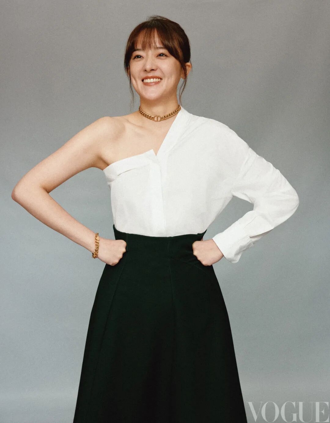 白色单肩衬衫、长裙、高跟鞋、项链、手镯 均为Dior