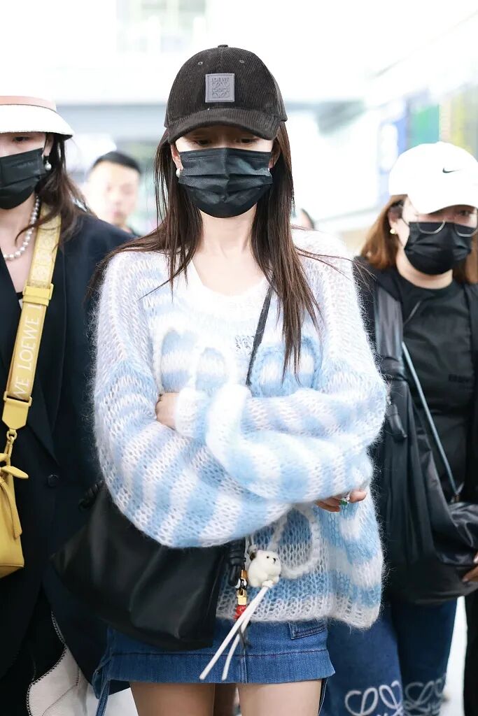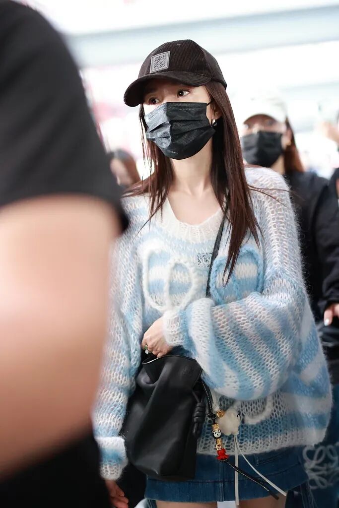 前不久在从巴黎时装周启程回国的时候,刚刚解锁Loewe全球品牌代言人的杨幂,就上身了一件该品牌的蓝白条纹logo毛衣,软糯的马海毛材质搭配清新的色调,在人群中也是十分吸睛的存在。