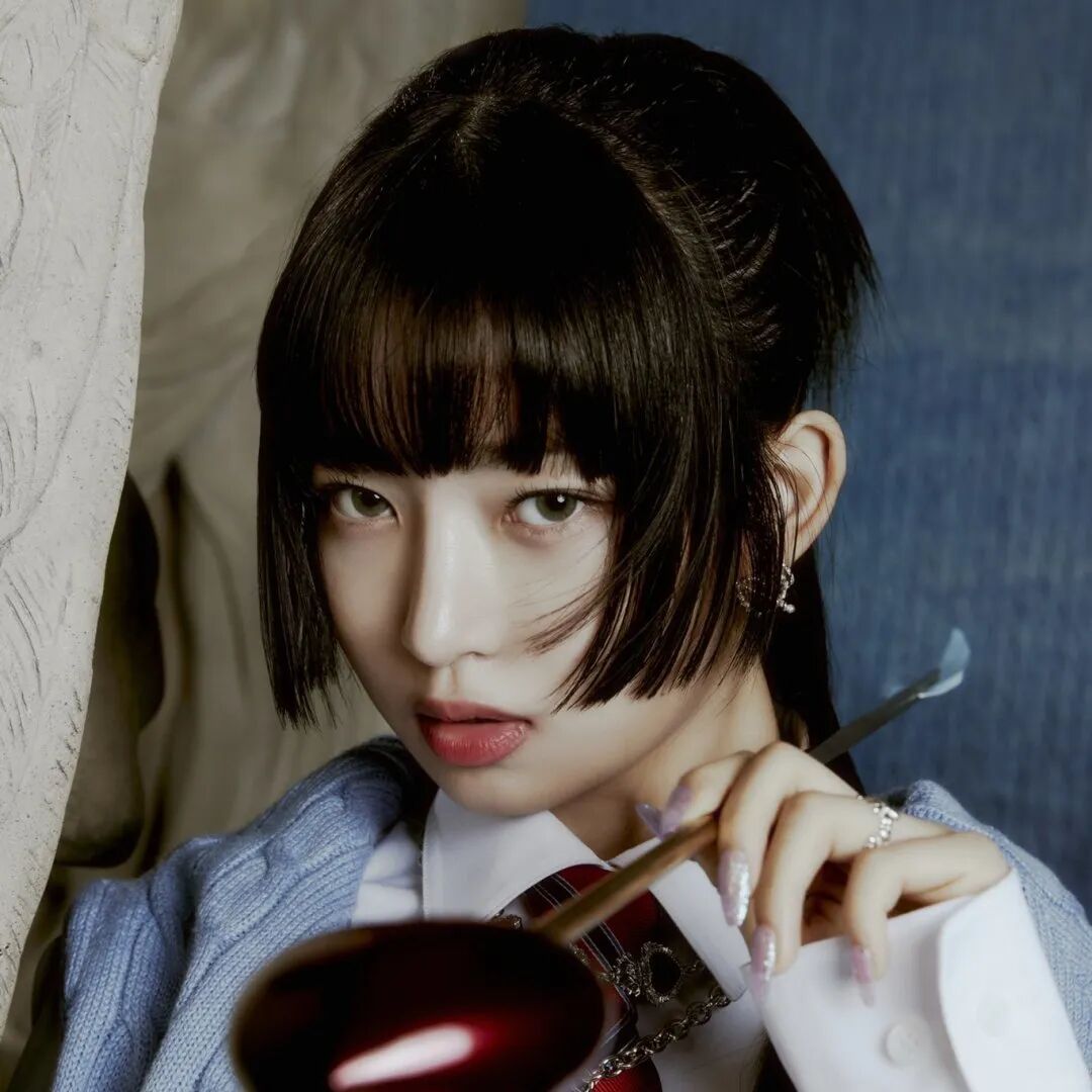 近两年公主切发型其实一直都很有热度,韩国大热女团New Jeans的Haerin,还有IVE的Rei此前都尝试过这种造型,她们则将两鬓处的刘海剪得更短,更显幼态。