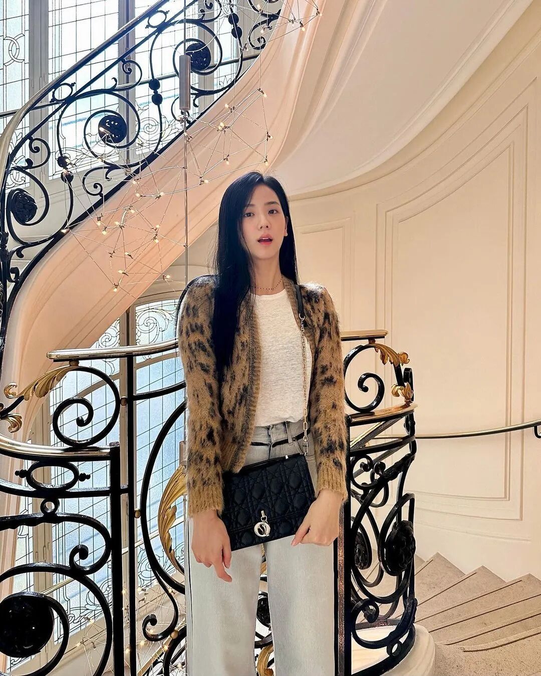 Blackpink成员智秀此前在时装周日程期间,出街私服也上身了一件棕色毛衣开衫,搭配简约白tee极具松弛感。