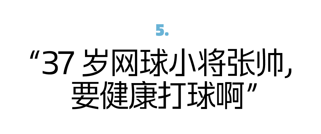 “对我来说,健康地打球,比赢任何比赛都重要。”张帅曾在采访里说,只有这样,她才能坚持到下一场比赛,真正享受网球的过程。 打球几乎是她生活的全部。张帅多次在采访里说,“我没有什么太多业余爱好,没有什么太多的兴趣。”她喜欢听音乐,也会看剧看综艺,比如看《乘风破浪的姐姐》,“看到她们努力的样子,而且并都不是自己擅长的事情,感觉像极了我们。” 张帅开始被称作“老将”,因为无论年龄还是成绩履历,她都是场上最资深的球员之一了。张帅于是自称“网球小将”,她说,“现在的张帅是有史以来最好的,但更好的(张帅)还没到来。” 重要的是,她还在球场上。37岁网球小将张帅,要继续健康打球啊!