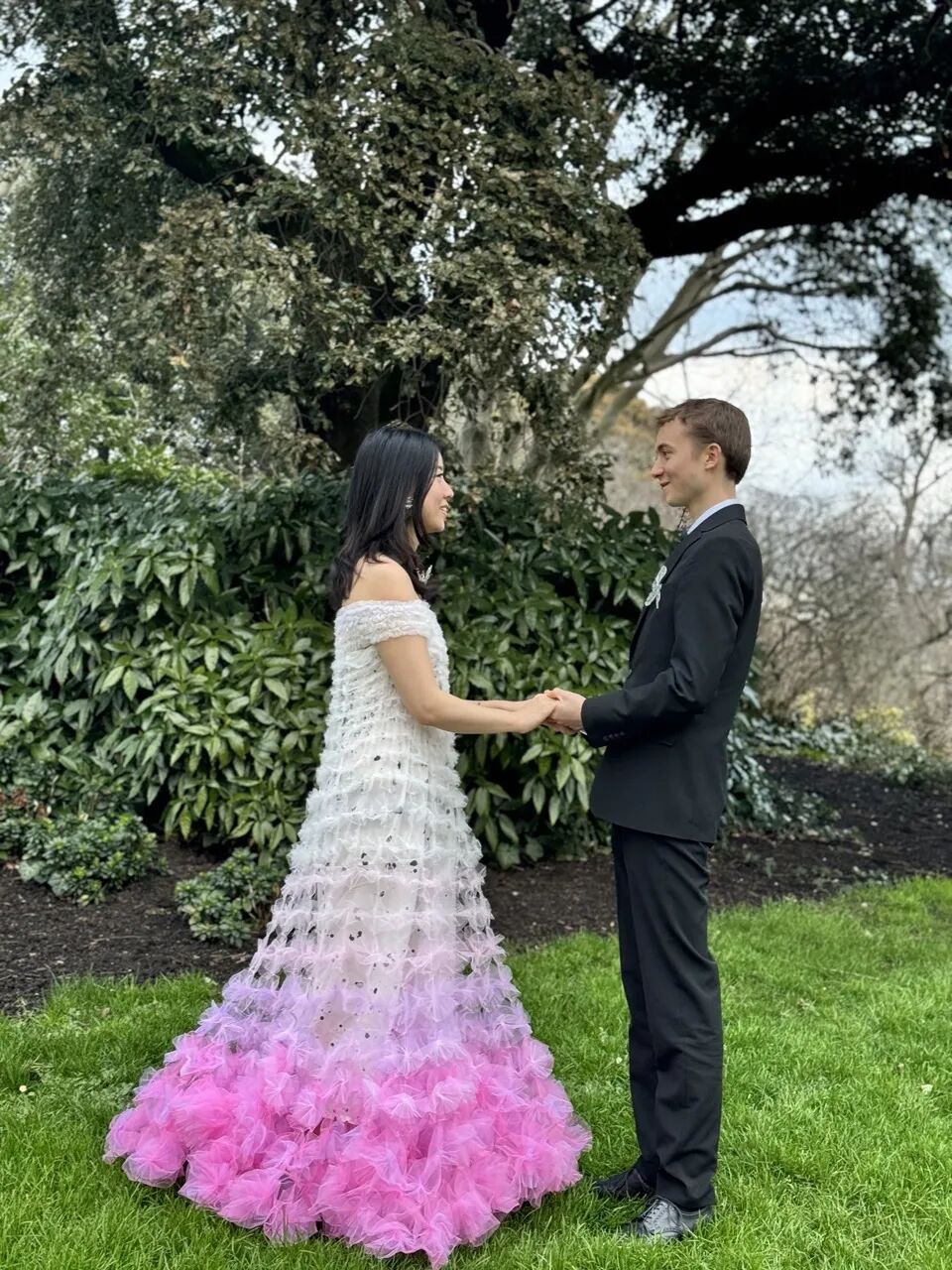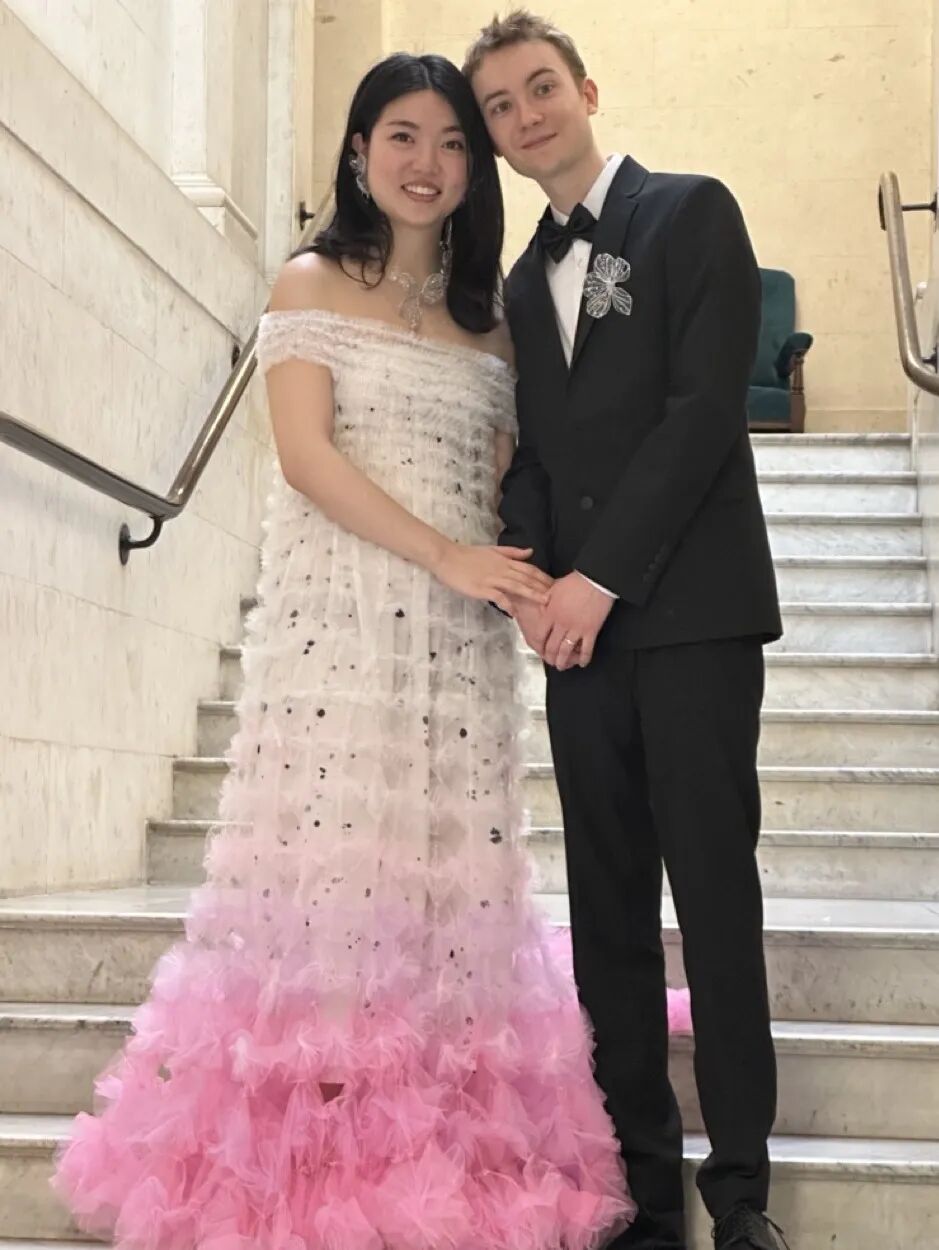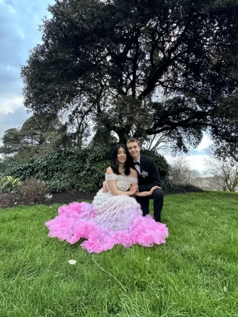 在现实生活中遇到自己想象中的伴侣是什么感觉?“直到现在,我都还在为遇到Orelio感到惊喜和幸运,每一天都是”,结婚登记仪式前一周,Susan在电话那边笑着说。“我曾在一座寺庙认真地许愿,写下自己理想中的伴侣的特质。遇到Orelio之后,我发现他就像我创造出来的理想人物,甚至长相都和我很喜欢的一部皮克斯动画《夏日友晴天》里的主人公卢卡相似!” 从小离开家乡宁波前往上海,中学时期在加拿大和美国度过,大学前往伦敦在中央圣马丁(Central Saint Martins)深造,在成立个人品牌后又穿梭在上海与伦敦两地之间......Susan是在“跑来跑去”中长大的。多元多变的成长环境让Susan渴望更为纯粹、真诚、稳定的爱情。 在相遇之前,Susan和来自比利时的Orelio曾在各自的社交软件个人简介里,真诚写下对设计和艺术的看法,希望吸引到频率相同的另一半,两人的第一次聊天也开始于交换作品集后的互相欣赏。在速食爱情时代,一段拙朴的谈话却成为一段美妙爱情的开端。 作为知名电器品牌的工业设计师,Orelio与Susan有太多共同话题,既能为对方提供灵感,又能从各自的工作领域出发带来新的思考角度。除了在设计领域的深度共鸣,Susan和Orelio在生活中也完美契合。在恋爱近两年的时候,他们毫不犹豫地决定走进婚姻,希望更长久地在一起创造更美好的生活。 Susan对婚纱的设计灵感,来自她生日时Orelio亲手制作的一段动画。画面里,花瓣不断轻盈飘落,但粉色花朵却坚定地永恒绽放。爱人的礼物引发了Susan对爱情的深入思考:“不知道为什么,当时想到的第一个概念是自爱,因为只有学会好好爱自己,才有能力给予伴侣更好的自己和更温暖的爱”。