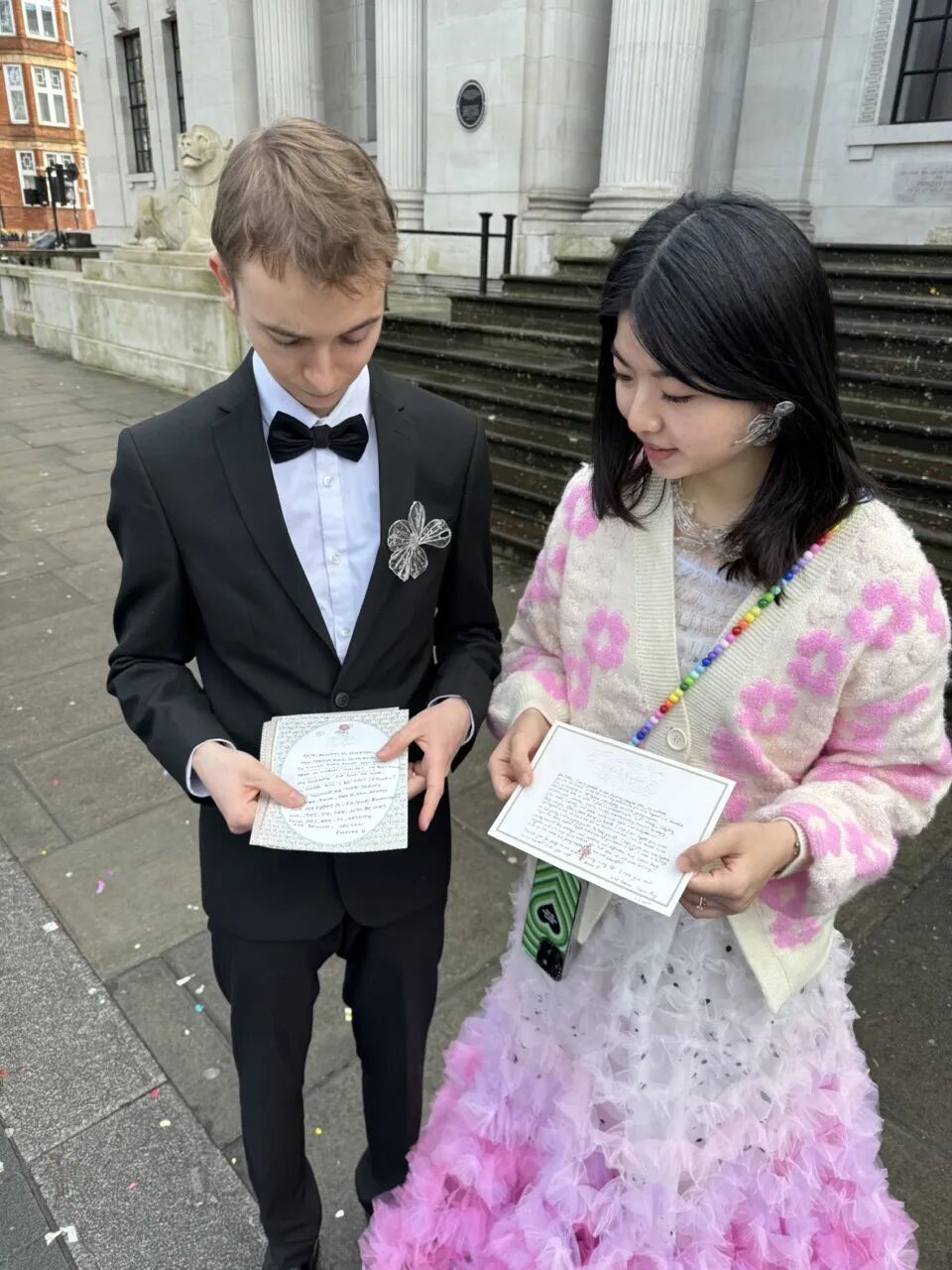 轻盈的、浪漫的、贴近自然的,自2017年成立以来,中国独立设计师品牌SUSAN FANG凭借着如梦如幻的设计风格,不断巩固着品牌的辨识度,在时尚界收获了越来越多的关注。在创造美丽成衣和配饰的同时,品牌创始人Susan Fang(方妍楠)也收获了自己的美好爱情。2月11日,Susan和爱人Orelio在伦敦注册登记结婚,正式成为夫妻。登记仪式上,Susan穿上了自己设计、妈妈制作的婚纱。在此,Susan特别为我们分享了婚纱的创作灵感和她的爱情故事。