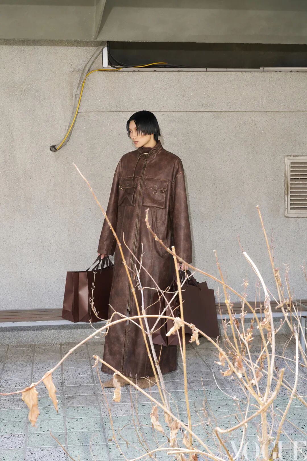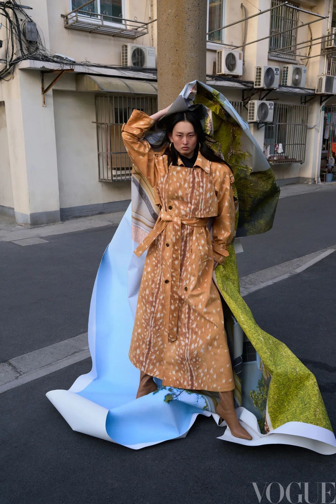 2024 秋冬系列的设计展示了矛盾共体,粗犷与细腻之间的讨论,同时是一种对焦躁情绪的美感转化。我希望通过这个系列,探索女性新风貌。通过形容心境、情绪来传递情感,以展示出在粗犷焦躁的环境中,女性审视自我的新形象。这季运用了大量动物花纹和皮革材质,着重凸显秋冬季节的粗犷野性,使之充满新颖粗糙的触感。