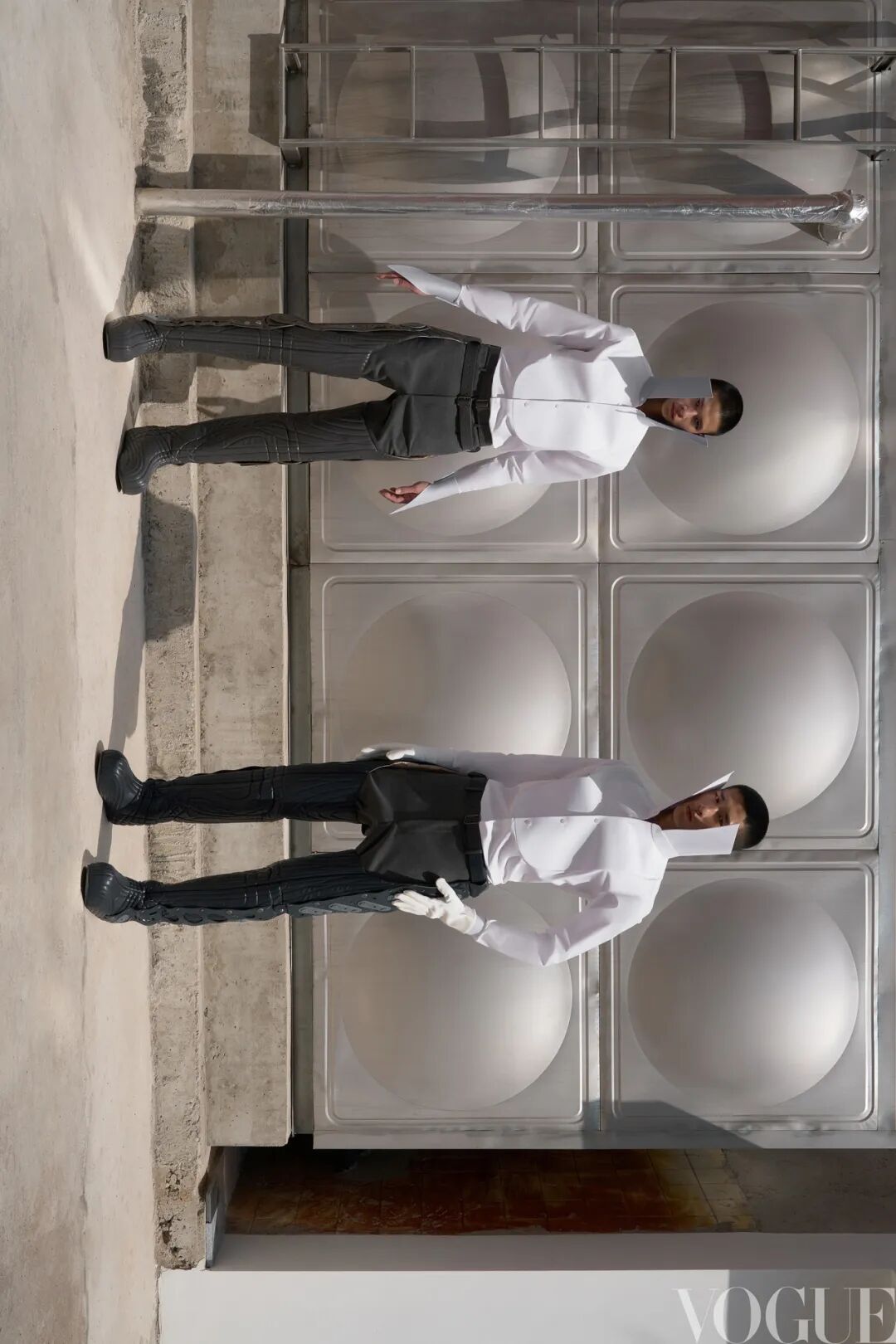 整个设计过程一直很像是在做一项研究,我们一直是按这样的方式去构建每一个系列,以及系列和系列之间的连接。通常当有了一个方向的时候,我会先仔细去思考这个系列的结构,很像是在写电影脚本,我需要有一个放眼望过去很清晰的逻辑。之后我会为这个故事去塑造人物。我喜欢服装制服化的那种角色代入感,可以更好地帮助我塑造故事的氛围感。就好比这一季我基本上都是运用正装元素,看起来非常制服化,当它们同时出现在一个空间里,就会创造出一条鲜明的故事线。最后一步,就是文字的解析。每一季我都会花很多的时间去和作者研究和探讨关于词和文字的方向。这个部分非常关键,它们是一种更直观的引导,所以需要这个指导是一种更加客观,甚至严谨的存在。文字风格需要符合我们整个系列的科技设计美学,它应该更像是一个“产品说明书”。