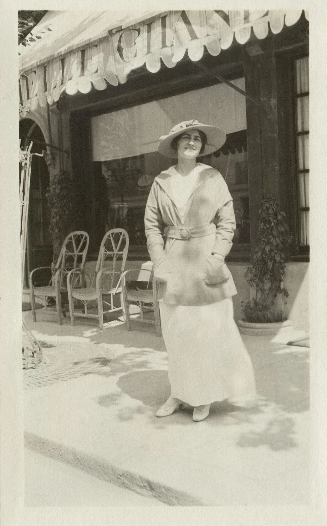 嘉柏丽尔·香奈儿在她的杜维埃服饰店前,1913年