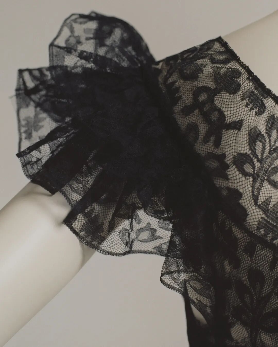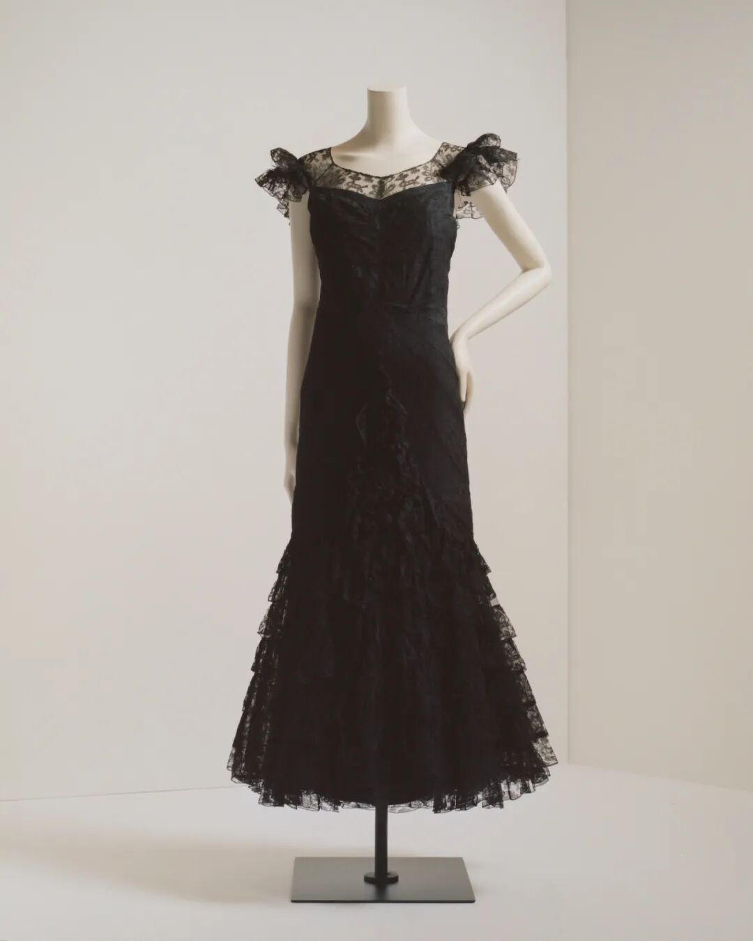 晚宴裙,1936-37年秋冬系列,黑色涂蜡真丝泡泡纱,装饰钻石配饰。巴黎,香奈儿品牌传承部。Julien T. Hamon