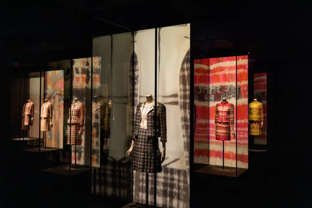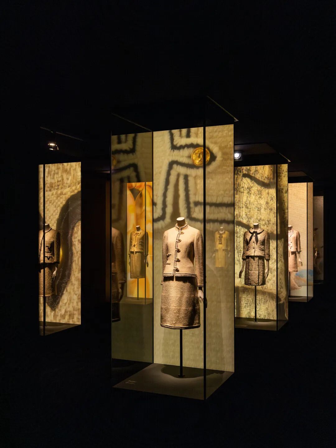 在这个章节,展览试图唤醒人们脑中香奈儿女士如何对斜纹软呢深入研究的联想——当初她如何将这种相对基本的面料逐步精细化处理,使其更加复杂和精致化。毕竟在那个年代,她是第一个与英国、法国和意大利不同工坊合作的设计师。