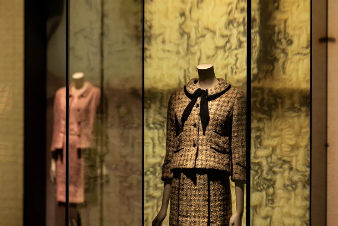 比如大众对香奈儿认知最深的标志性元素斜纹软呢,展览便呈现了巨大的“外套军团”。