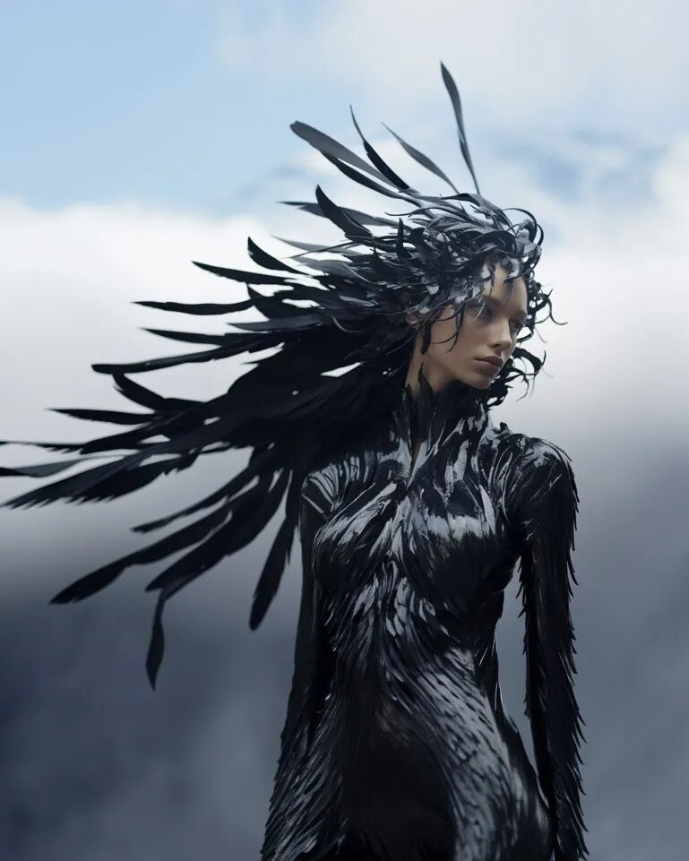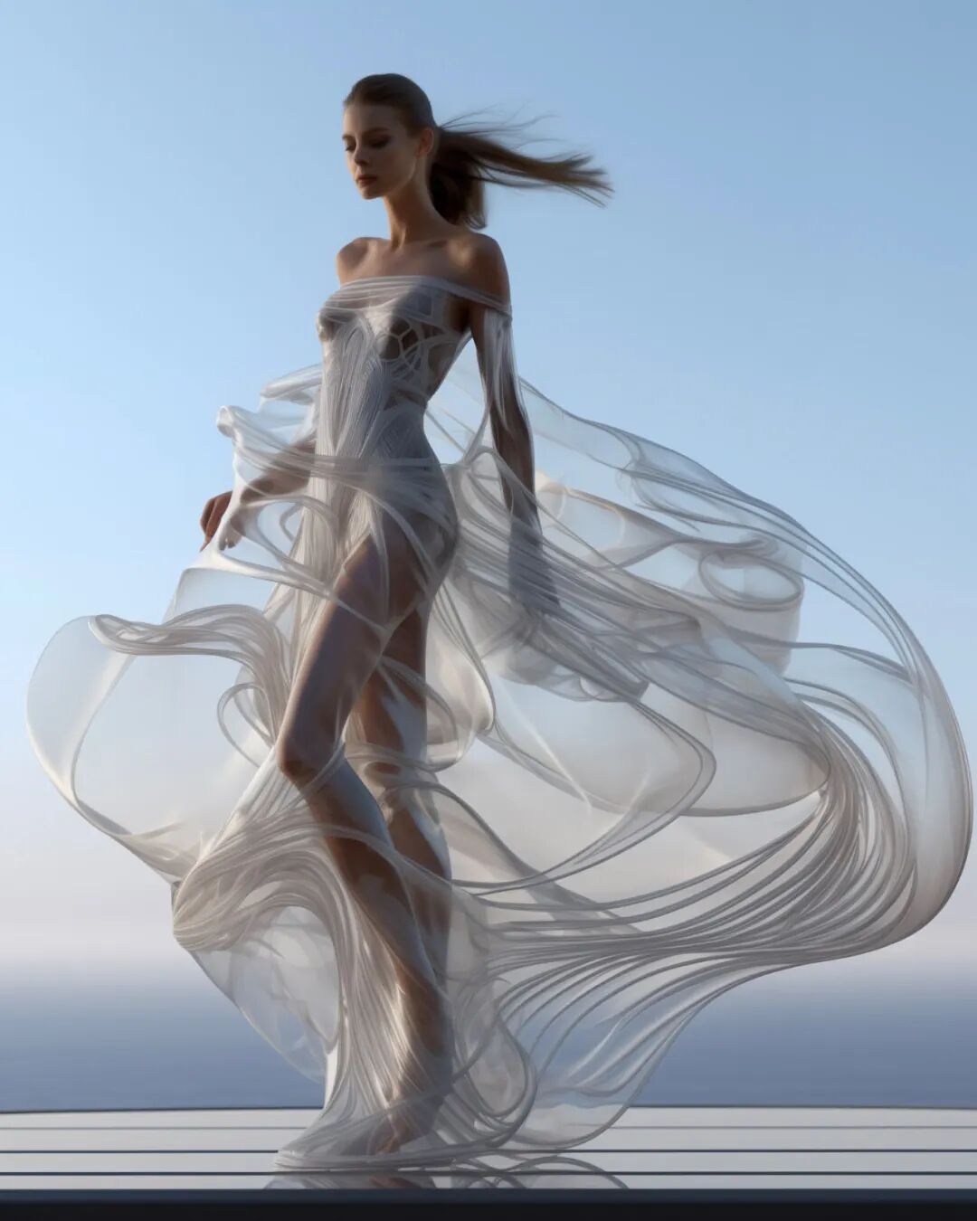 ← 滑动浏览 余一萌以往的AI时尚作品。