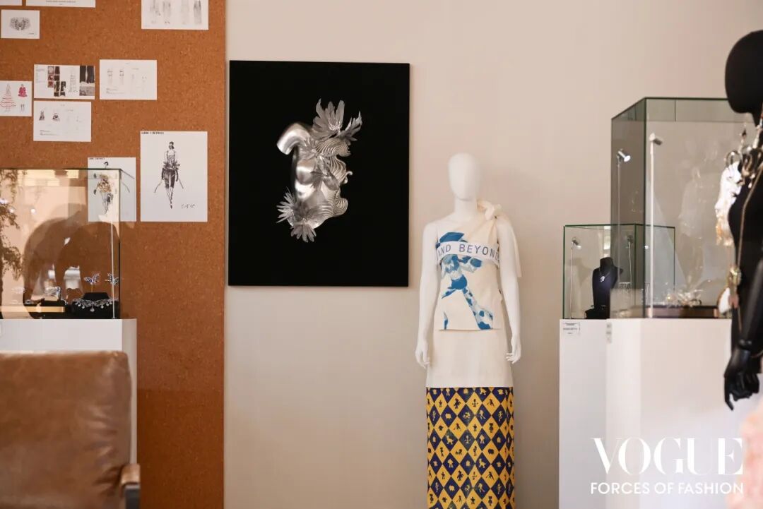 VOGUE Forces of Fashion活动现场展示的余一萌的决赛作品。