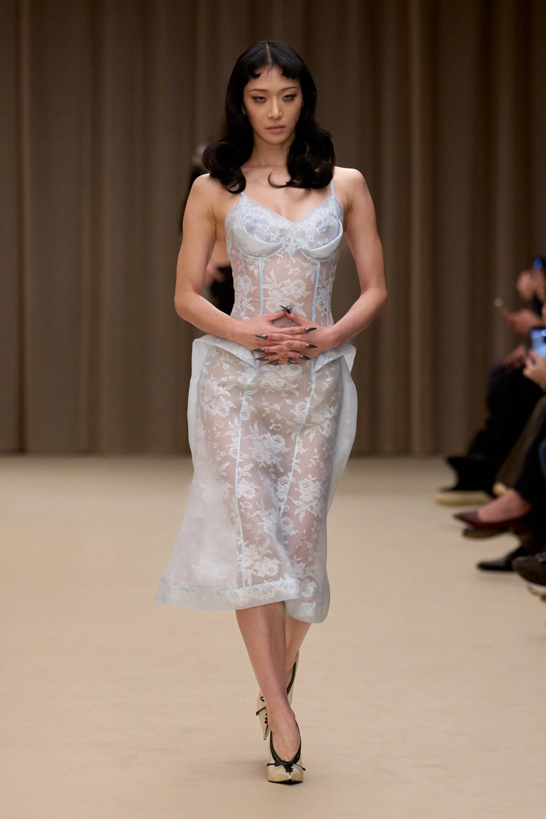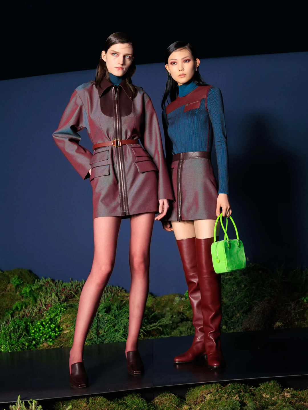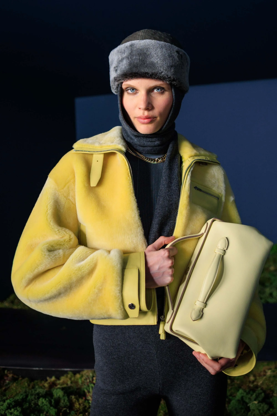 对一向古灵精怪的Miu Miu女孩来说,这是一个非常克制的系列。Miuccia Prada这样解释她对本季设计的思考,“我痴迷于身体的渺小——从人类的角度看,即我们自身、我们的身体与周遭浩瀚世界之间的对比。这个系列并非关乎脆弱,它蕴含着一种自信与力量。但它始终在探讨人类个体与辽阔世界之间的对抗。”