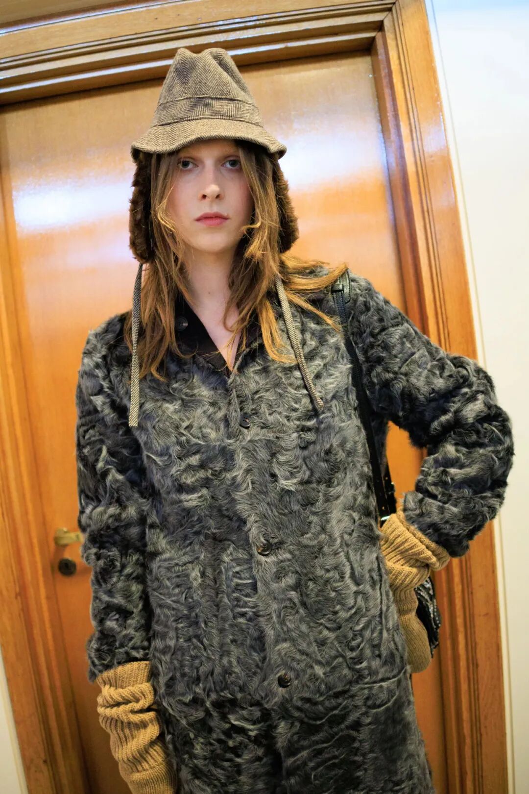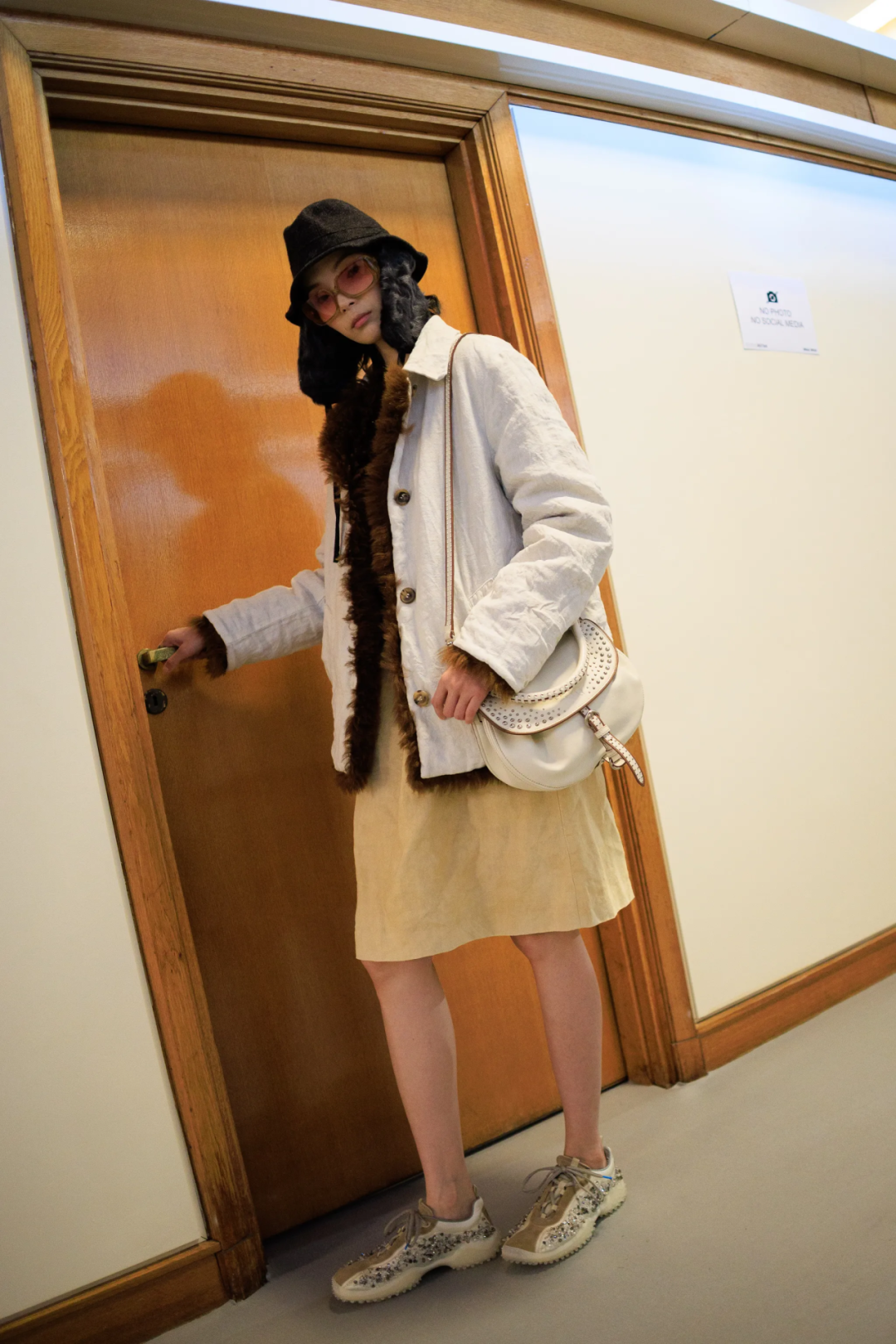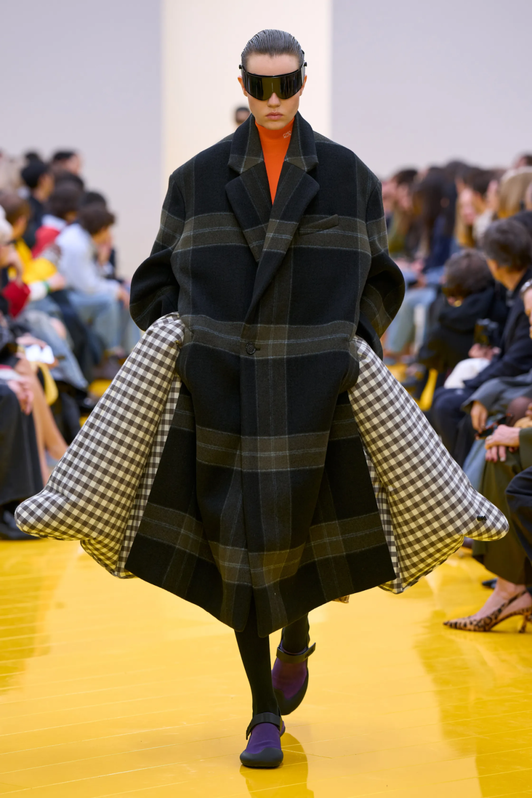 对一向古灵精怪的Miu Miu女孩来说,这是一个非常克制的系列。Miuccia Prada这样解释她对本季设计的思考,“我痴迷于身体的渺小——从人类的角度看,即我们自身、我们的身体与周遭浩瀚世界之间的对比。这个系列并非关乎脆弱,它蕴含着一种自信与力量。但它始终在探讨人类个体与辽阔世界之间的对抗。”