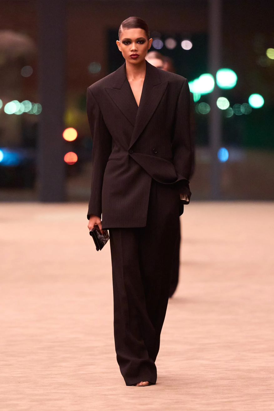 当Anthony Vaccarello用近乎三分之一的篇幅来呈现燕尾服套装的时候,你就知道他想要表达什么了。今年是Yves Saint Laurent著名的“吸烟装”问世六十周年的日子。实践证明,曾经被视为离经叛道的禁忌设计,如今却成为了现代女性的精神象征,是社会发展进步的缩影。