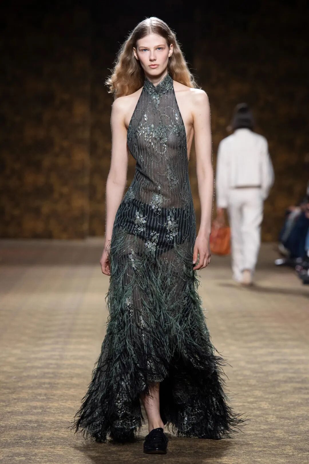 “这真的是为普通人设计的服装,而不是为了塑造某种形象。我就是这么告诉我的团队的。不要‘炫技’,” Mulier这样解释本季的创作动机,“要精简,精简。没有包包,没有珠宝。只有美丽、服装和一双裸鞋。因为这就是Azzedine的精髓所在。”