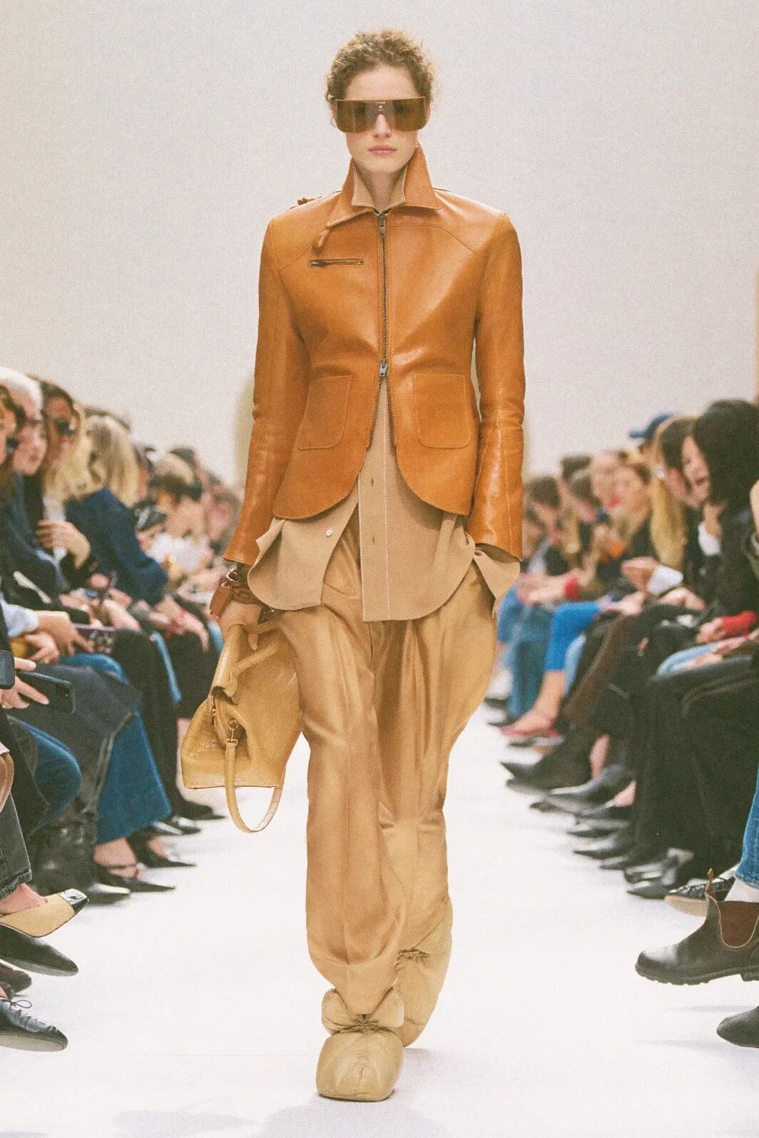 所以在Rider的创作中,你不会看到那些“奇观式”的概念作品,丰富的履历让他理解人们是如何真正在生活中享受时装的。即使你并非有实力购入Celine的单品,也可以在这场秀中找到大量的理想造型参考。大衣和配饰如何组合更加得体,毛毯应该怎样夹在腋下更有腔调,披肩与哪种裤型搭配更能修饰比例,Rider都在这场秀上说得很明白。