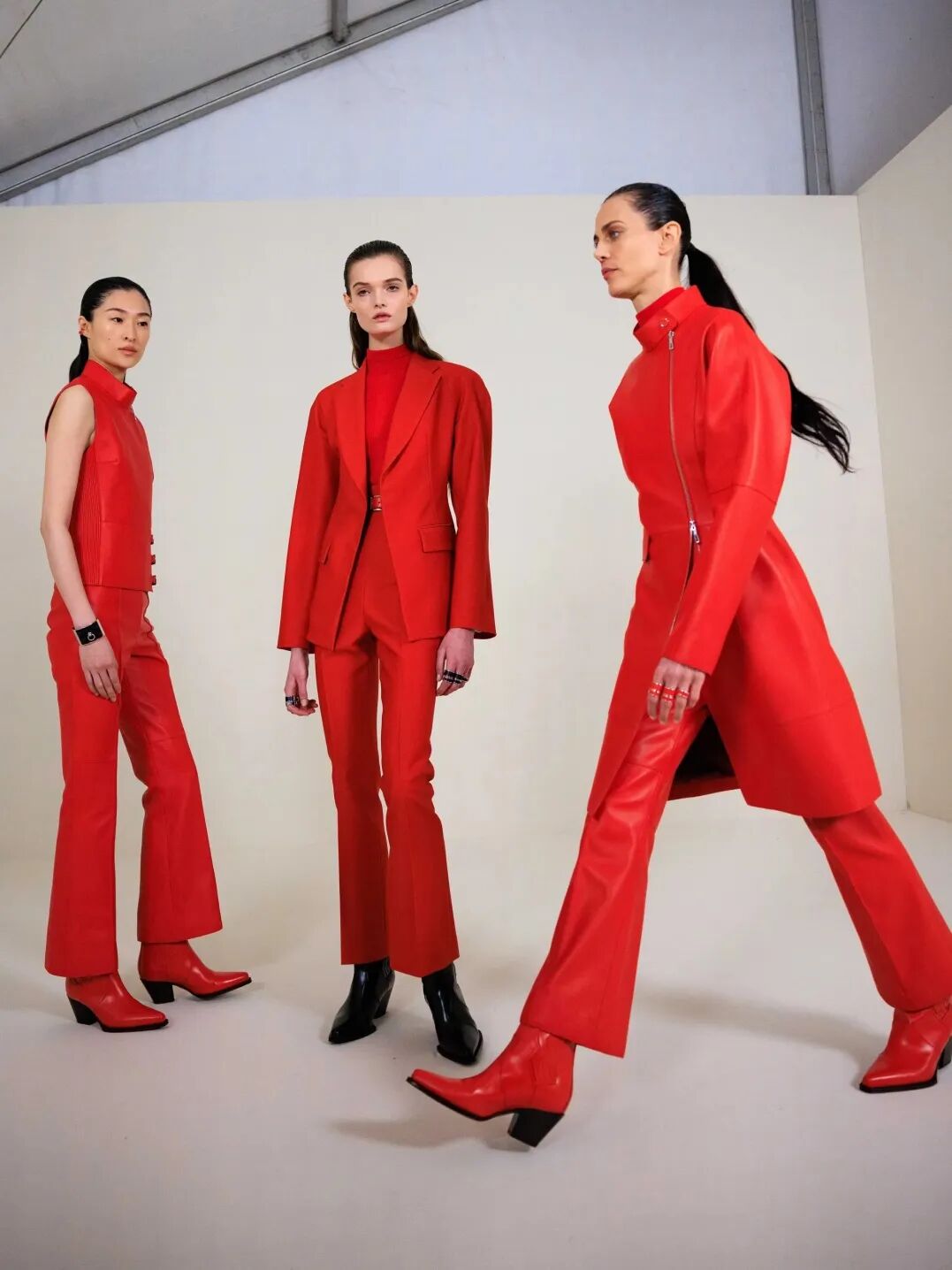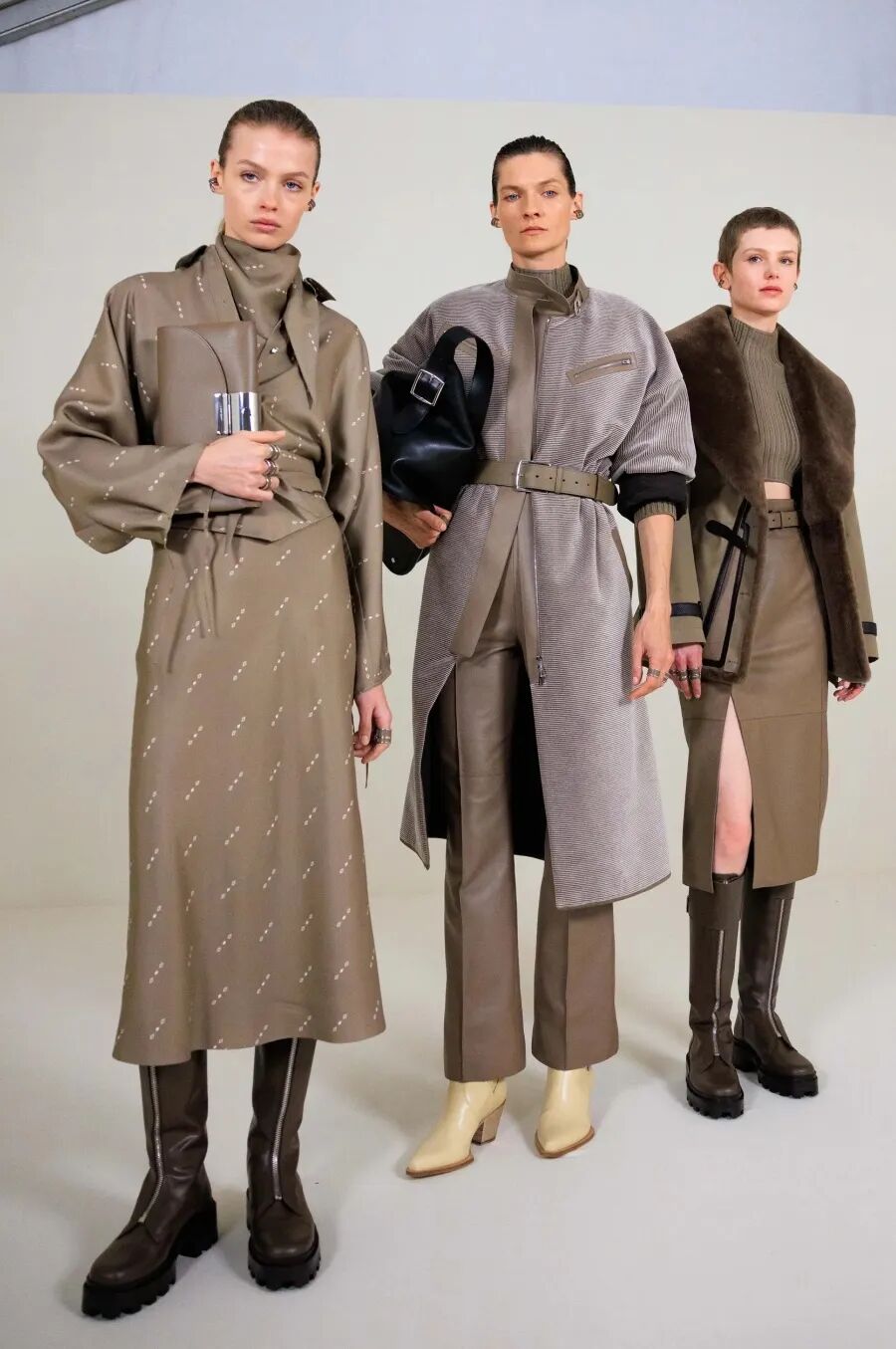 秀场中央架起的水帘装置模拟出户外运动时可能会遇到的天气状况,而身着Hermès新装的模特们似乎并没有受到这些“雨水”的影响,机车感十足的皮质夹克、及膝长靴以及光滑挺括的运动外套都充分体现了品牌背后的工艺积累与扎实用料,但与此同时,Vanhee也没有忽略女性们的日装需求,通身的黄油米色和明丽红色造型为系列点缀出动人光彩,围巾巧妙裁成褶裥束腰连衣裙、可舒展变作真正毛毯的毯式大衣,都在让人期待下一个秋天的到来。