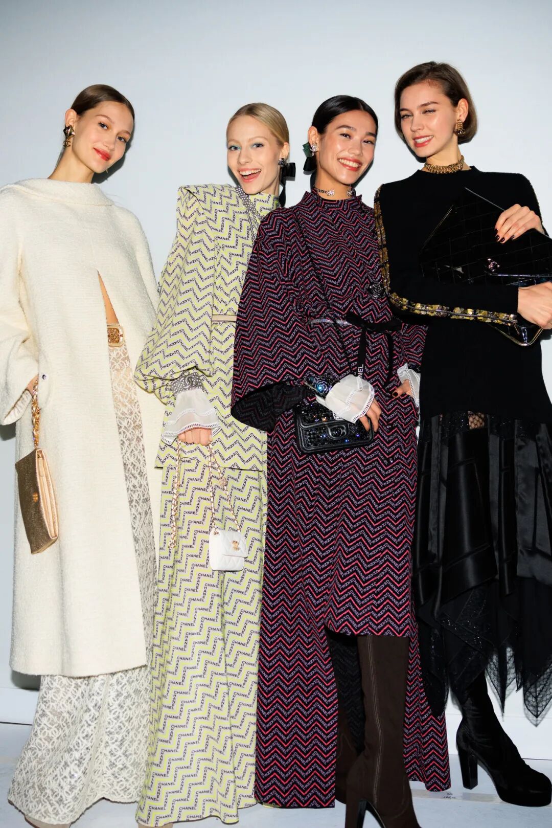 “杜维埃是品牌的发源地。1912年,她在这里设立了女帽店,并很快推出了一系列服装作品,彰显富有远见、先锋前卫的风格。嘉柏丽尔·香奈儿的事业由此起步。这个故事令我倍感亲切,”维吉妮·维娅如是说。在重现了杜维埃海滨步道场景的秀场内,模特们迎着硕大荧幕中流转的晨曦光影,身着颇具慵懒惬意的便袍式束腰大衣、针织开衫、粗棒针织水手毛衣、真丝印花衬衫,演绎出飘逸率性的姿态,抢镜的宽檐帽与粉色、淡紫色、橘色与淡蓝色等鲜明或柔和的色调烘托出复古电影中迷人的法式浪漫。维吉妮·维娅希望通过这个系列带领人们回溯往昔那些美好的记忆片段, “David Bowie的身影,以及像嘉柏丽尔·香奈儿的挚友Anouk Aimée这样的电影明星,在沙滩上漫步的迷人姿态……系列作品向这些熟悉的人物形象致意。”
