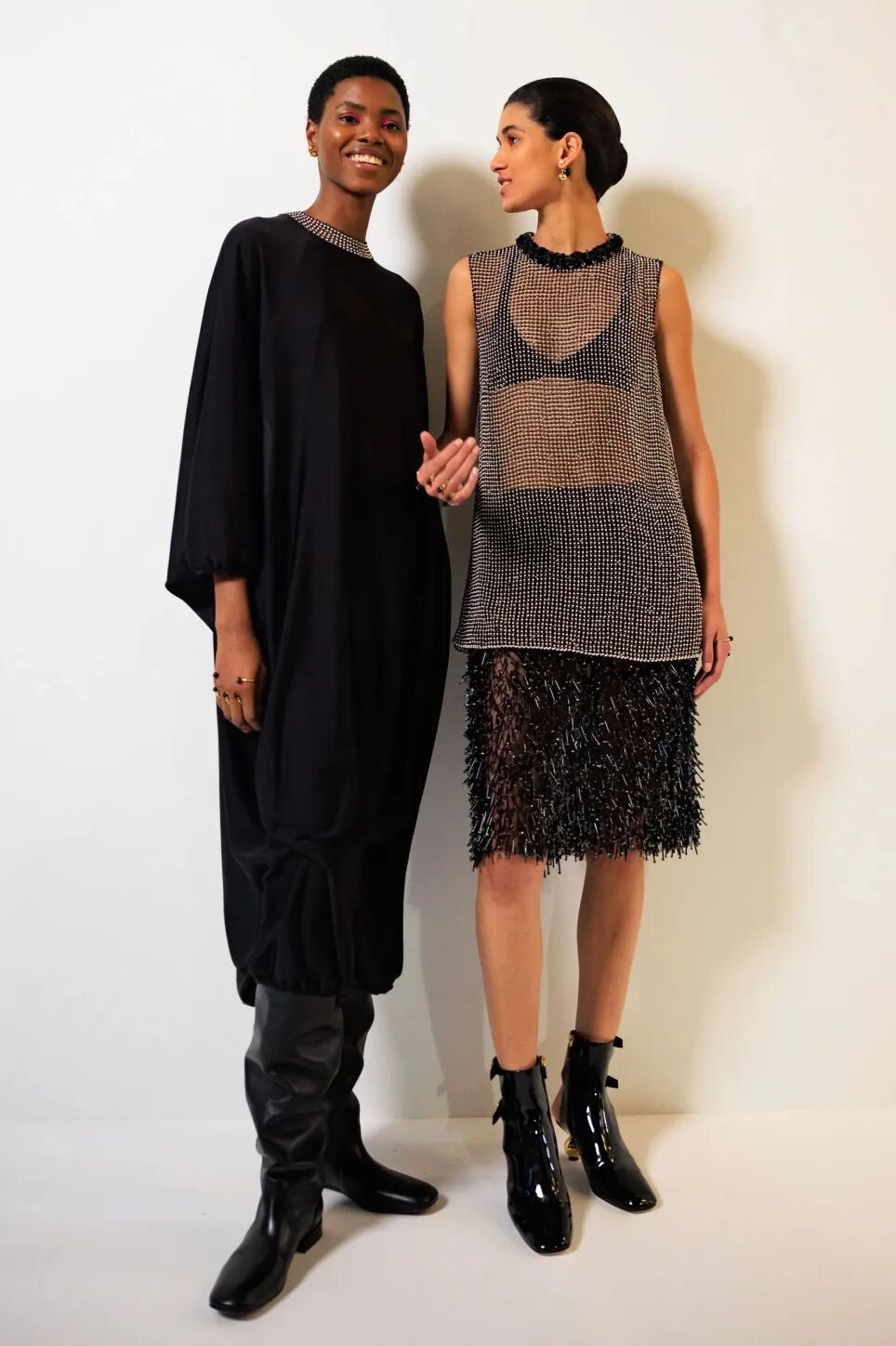 对Kamali而言,过往在Chloé的工作经验使她在首秀的创作中游刃有余,那些流淌在品牌70年代档案中的波西米亚浪漫情节被她信手拈来,从时装到配饰,无一不唤起我们对Chloé经典形象的痴迷,“我认为如今作为女人,你需要能够跟随你的直觉,做你自己。这在很大程度上是一种直观的穿衣方式,关乎轻盈、动感、流动性和情感。”显然,Kamali在创作中也更为信奉直觉的力量,当那些柔美的荷叶边薄纱、皮质流苏与模特们的散发一同飘逸在空中时,秀场中那些曾亲眼见证Chloé浪漫时代的Georgia May Jagger、Anna Cleveland和Sienna Miller都露出了笑脸。是的,我们熟悉的那个Chloé终于回来了。