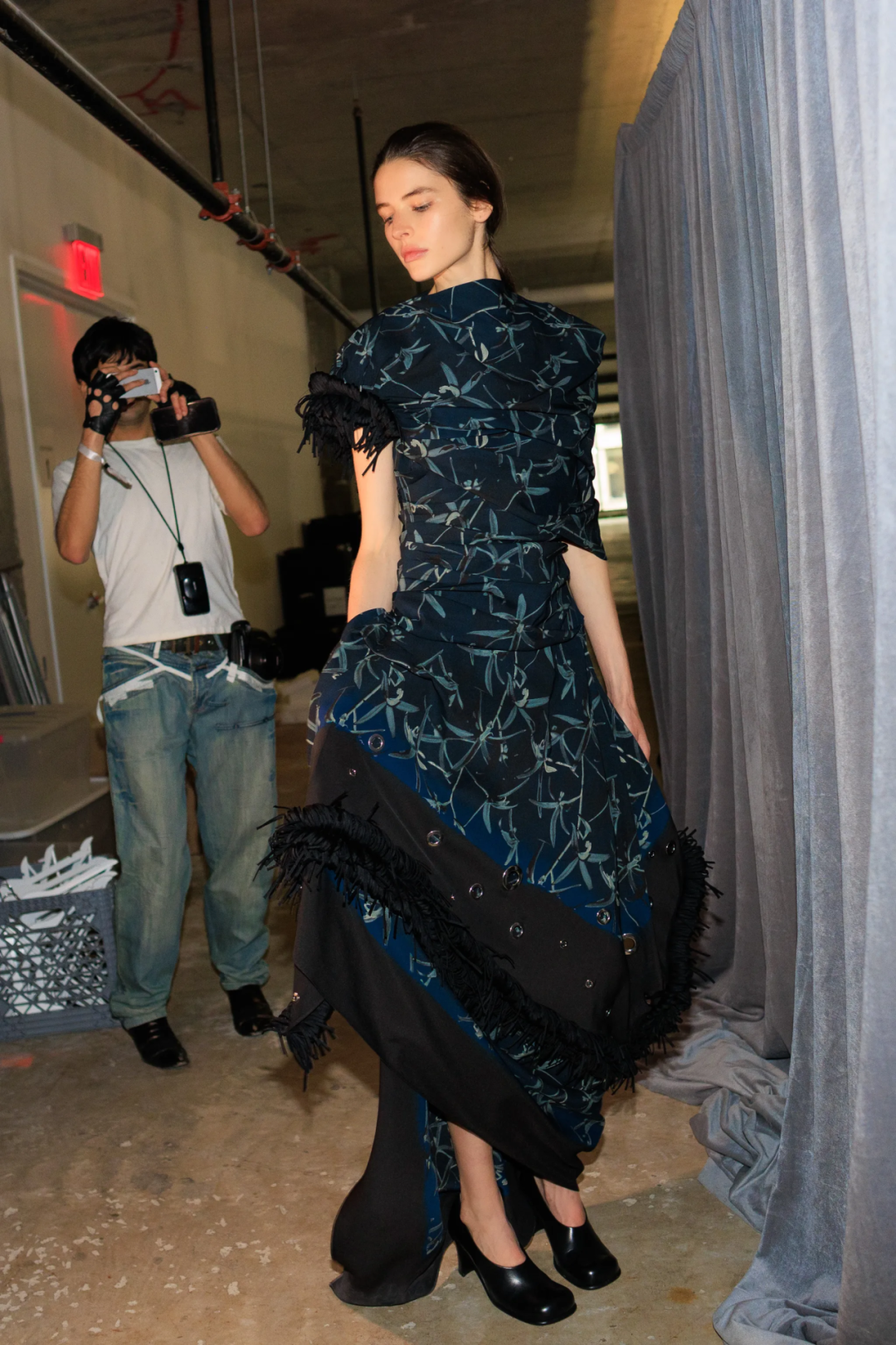 显然,在当下的时装界,Catherine Holstein和她创立的Khaite似乎就是上述问题的答案。在品牌标志性的皮质夹克、大衣和针织单品的基础上,Holstein还进一步尝试了飘逸盛大的吊带礼服裙和晚装系列,补全了Khaite所能涵盖的、现代时装的方方面面,她承认这是在“挑战自己的极限”,但现场的掌声和互联网上的讨论度,证明这次挑战完全成功。
