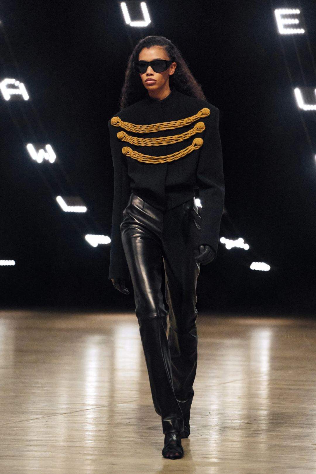 首先让我们欢迎超模Raquel Zimmermann的回归,还有Natasha Poly和Julia Nobis的加盟!单从这些模特卡司的出现,就不难看出Khaite取得的阶段性成功。当然,本季在公园大道军械库布置起的巨型LED显示屏秀场同样令人惊艳。模特们穿梭在幻变的光点之中,身着带有装饰性编织带的军官夹克、皮质大衣,格外率性洒脱。设计师Catherine Holstein坦陈,灵感来自于70年代的纪录片《F for Fake》,从本片导演提出的“我们如何看待艺术,我们如何看待真实性,以及谁才是品味的仲裁者”的提问中,延伸出属于自己的思考。