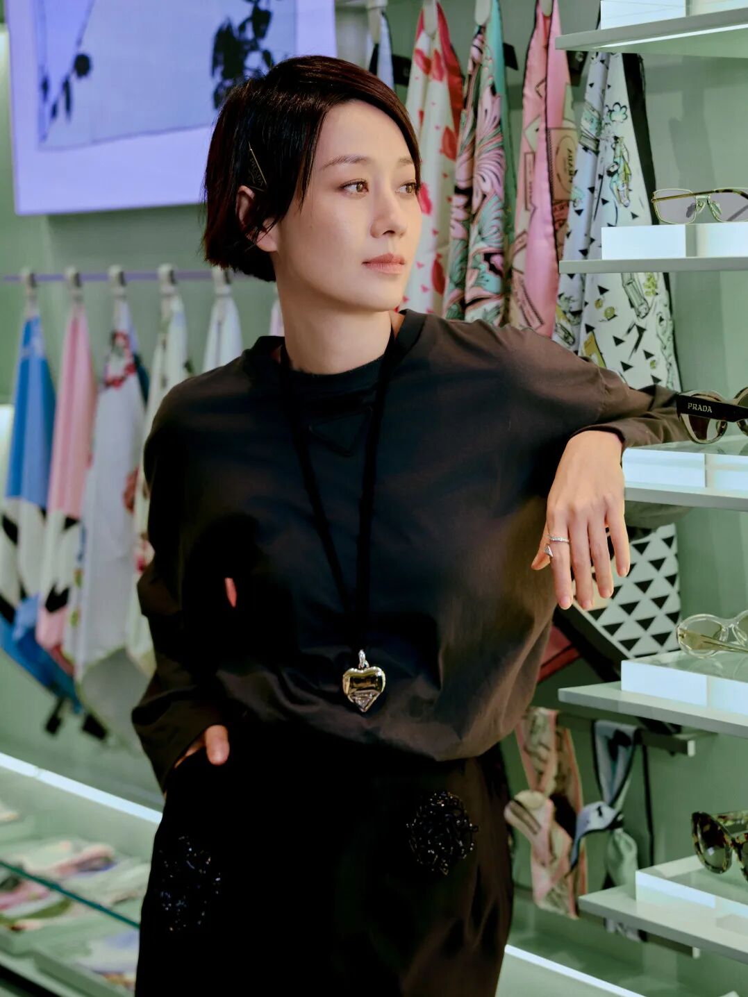 在店铺内,标志性的黑白方格大理石地板再度出现,绿色墙面辅以黑色金属饰条,尽显独特风格。木质屏风不仅将休息区与产品展示区巧妙分割开来,同时还在保证通透性的同时让空间不失去原有的纵深感——这是东方家具陈设所带来的特有效果,为摩登空间带来细腻婉转的气质的同时又不会使其过分古朴。此外,店内还陈设了绿色可丽耐材质和水晶玻璃打造的展示柜、红木桌台、天鹅绒座椅以及米色地毯,尽显高级格调。 现时女士精品店内展售最新系列成衣以及多款女士手袋,包括Saffiano皮革制作的Prada Galleria手袋,以细腻小牛皮打造的Prada Aimée手袋以及造型时髦的Prada Soft Lux手袋。 开幕酒会当天,包括Prada代言人李现、马伊琍;演员陈昊宇、董洁、胡一天、吕星辰、徐若晗在内的多位宾客来到了这一崭新空间,共同感受属于Prada的空间装饰之美。 ← 滑动浏览 正如前文所说,作为消费者最直接接触到品牌的场所,门店往往承担的不仅仅是销售的功能,它同样传递着品牌的价值观,体现着品牌的历史和文化积淀,用一种直观的、视觉的、交互的方式讲述着品牌的故事。 ← 滑动浏览 而在Prada的空间里,我们不仅能感受到以上所有,同样也能体会到不同领域交汇、碰撞所带来的独特魅力。