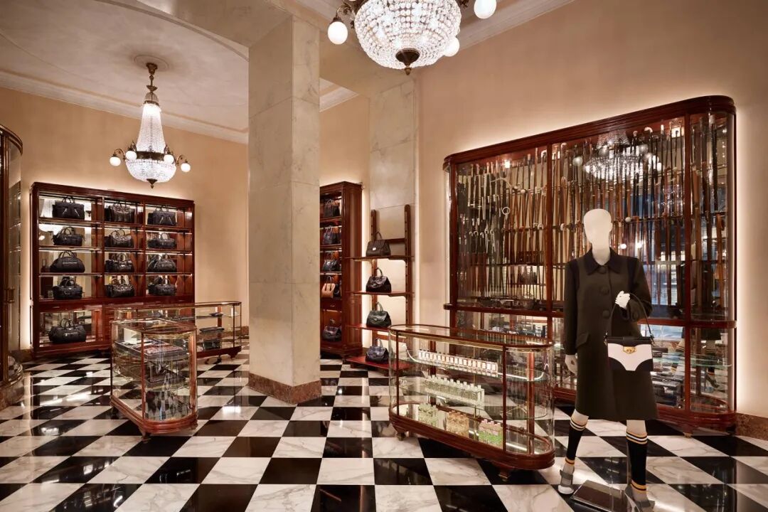 不知道大家在逛街的时候有没有注意过品牌门店的室内设计。 同一个品牌的不同门店,乍一看有着近乎一样的面貌,但在细节处又有许多小心思来将门店和门店区分开来。对视觉和形象有着极致追求的品牌来说,店铺不仅仅是一个卖货的场所,它更是一个彰显品牌文化的综合场域,历史、当下和未来都能在这里寻找到踪迹。 譬如Prada,这个十分有知识分子气息的品牌,本身就与建筑有着十分紧密的联系。譬如我们现在看到的品牌时装秀场,几乎都是由知名建筑事务所OMA(著名的CCTV总部大楼便出自他们之手)的镜像创意团队AMO一手打造,用专业的建筑设计视角来为秀场空间注入强烈的视觉张力。 AMO为Prada打造的部分秀场空间 Prada同样也投身于当代建筑实验和历史文化遗产保护工作中。譬如我们所熟知的Prada荣宅,便是品牌携手修缮专家、建筑师Roberto Baciocchi展开的一项修缮工程。经过数年的时间以及意大利和中国专家工匠团队共同的努力,这一荣宗敬家族的宅邸重获新生,并成为了南京西路上的一个热门地标。 Prada荣宅 不止是空间体现了建筑语言,设计上Prada亦积极拥抱建筑这一概念。此前的Prada Invites项目,邀请了国际著名的建筑师们,一同对品牌标志性的尼龙面料展开想象。包括Cini Boeri、Elizabeth Diller以及妹岛和世在内的建筑师们,都用自己的设计语言重新解读尼龙面料。 Cini Boeri、Elizabeth Diller以及妹岛和世为Prada Invites打造的尼龙单品 当我们回到店铺设计的讨论中,Prada在这一方天地里自然也融入了很多不一样的巧思。当我们随机走进一家Prada门店时,抓住我们眼球的第一样事物,往往不是货品,而是有着黑白方格设计的大理石地板。黑白方格的不断拼接,既像是一个巨大的棋盘,又有着波普艺术一般的摩登美学效果。