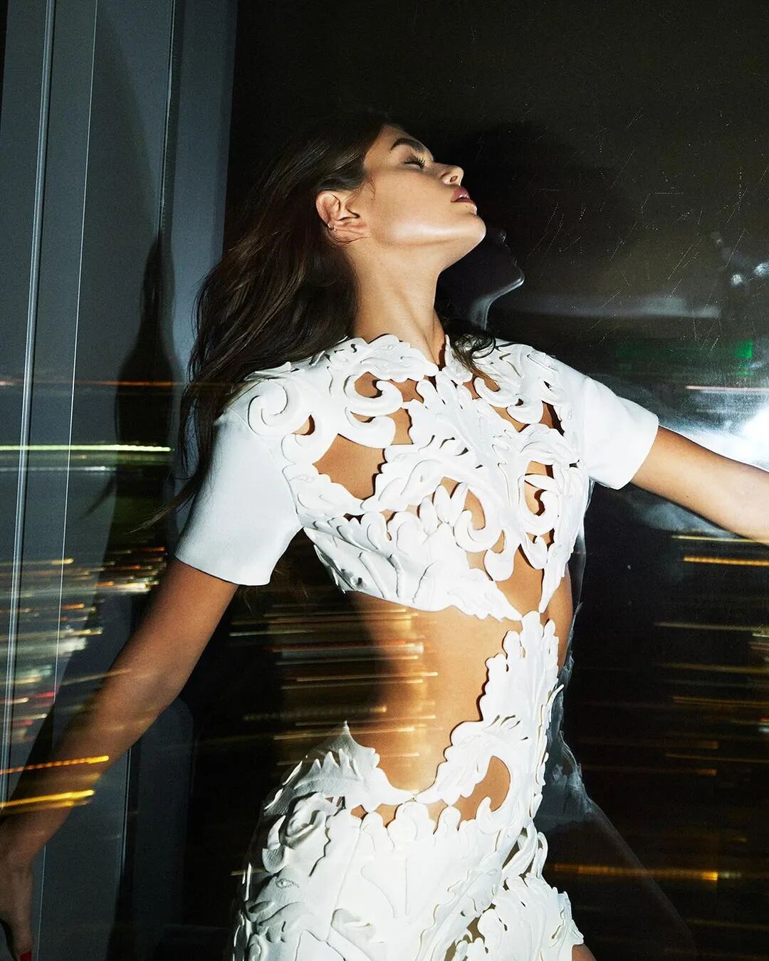Kaia也曾演绎过Cindy当年的一些标志性的时尚造型,例如在2019年Kaia 18岁生日时穿了一件Versace定制的绑带裙,就与她母亲1992年在MTV颁奖典礼上穿的Versace 1992秋冬系列单品相似。