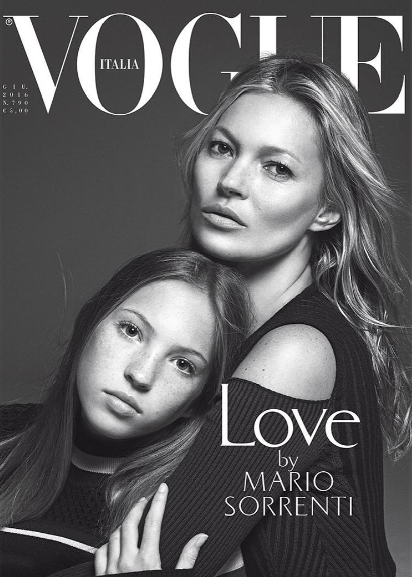虽说Lila在知名度上不似前两位星二代这么高,但其实也已经进入时尚圈好几年了,2016年,在她还未满14岁时就与母亲Kate Moss一起登上了意大利版VOGUE杂志封面。