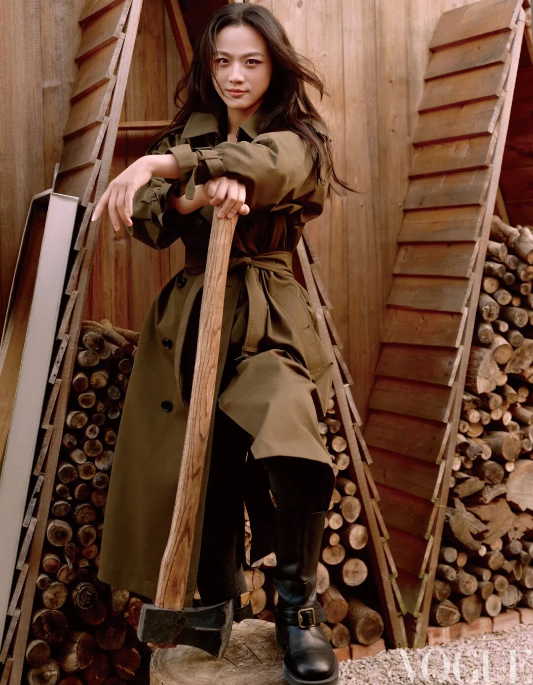 因拍戏的缘故,汤唯在福建过了大半个冬天,尽管中途遇到寒潮降温,但她度过了一个暖冬。此次封面拍摄在福建宁德霞浦的一间民宿。车从海岸公路拐进一条通往山坡的窄路。路面开始变窄,两侧的植物渐渐茂密,芭蕉叶在风里轻轻晃动。再往里开一段,房子开始零星出现,在植物间隐现。站在院子边缘往远处看,山坡之间露出一小段海面。风从海面吹来,空气里带着一点潮湿的咸味。