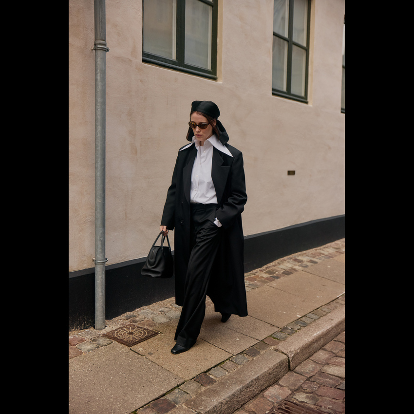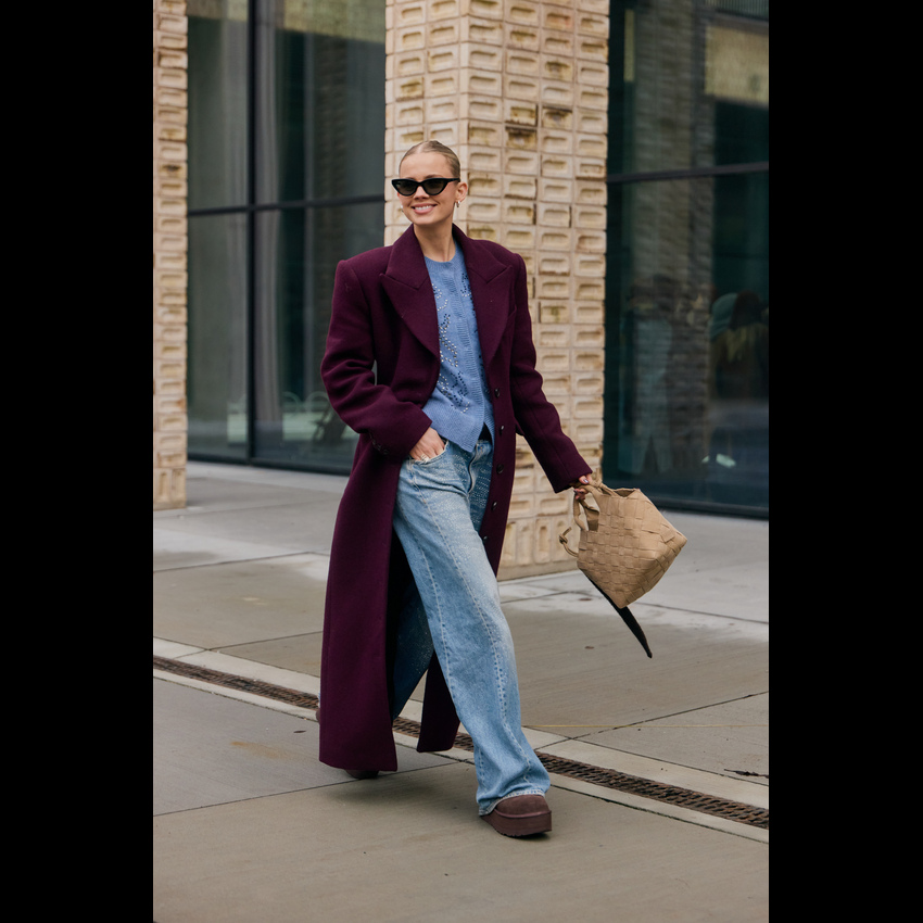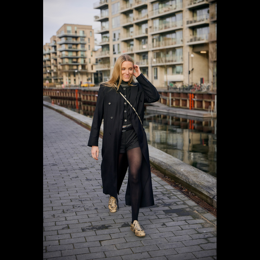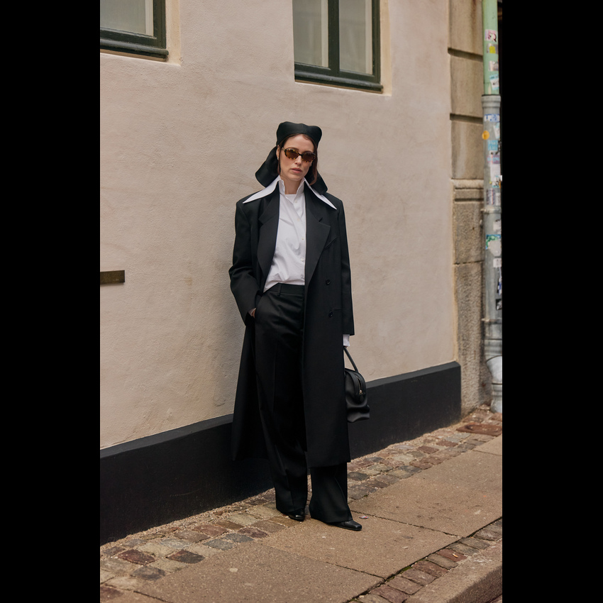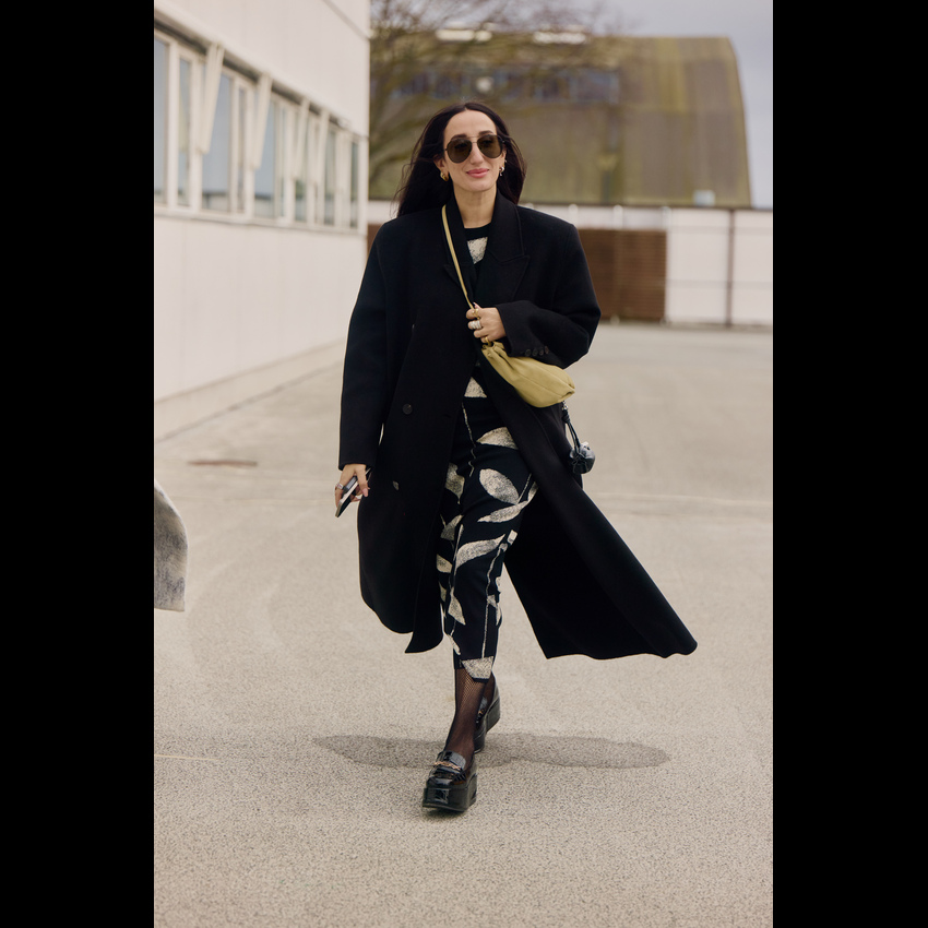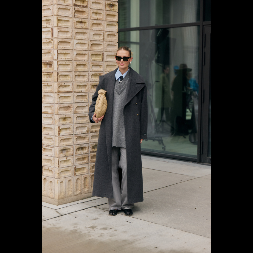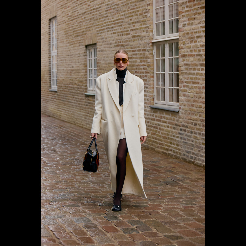 一件西装大衣,堪称冬日衣橱里的“人格转换器”,通过与不同单品的组合,它能瞬间切换你的风格身份。这就是经典单品的魔力:它的轮廓已为你奠定了干练与力量的基调,而你的选择则决定了叙事的走向。 搭配球鞋时,它立刻化身为“酷女孩”的战袍。无论是搭配小白鞋还是复古跑鞋,这种混搭彻底打破了西装固有的正式感,注入一股街头风的活力与不羁。内搭一件连帽卫衣是加分项,轻松演绎出当下最流行的“精致懒散”风。 当它邂逅长裙,则散发出浓郁的“知识分子”气息。垂坠的百褶裙、浪漫的印花连衣裙或是简约的针织长裙,都能与西装大衣的利落线条形成美妙的刚柔对比。再配上一副金丝边眼镜和一只托特包,那种饱读诗书、理性又充满艺术感的文艺氛围便瞬间拉满。