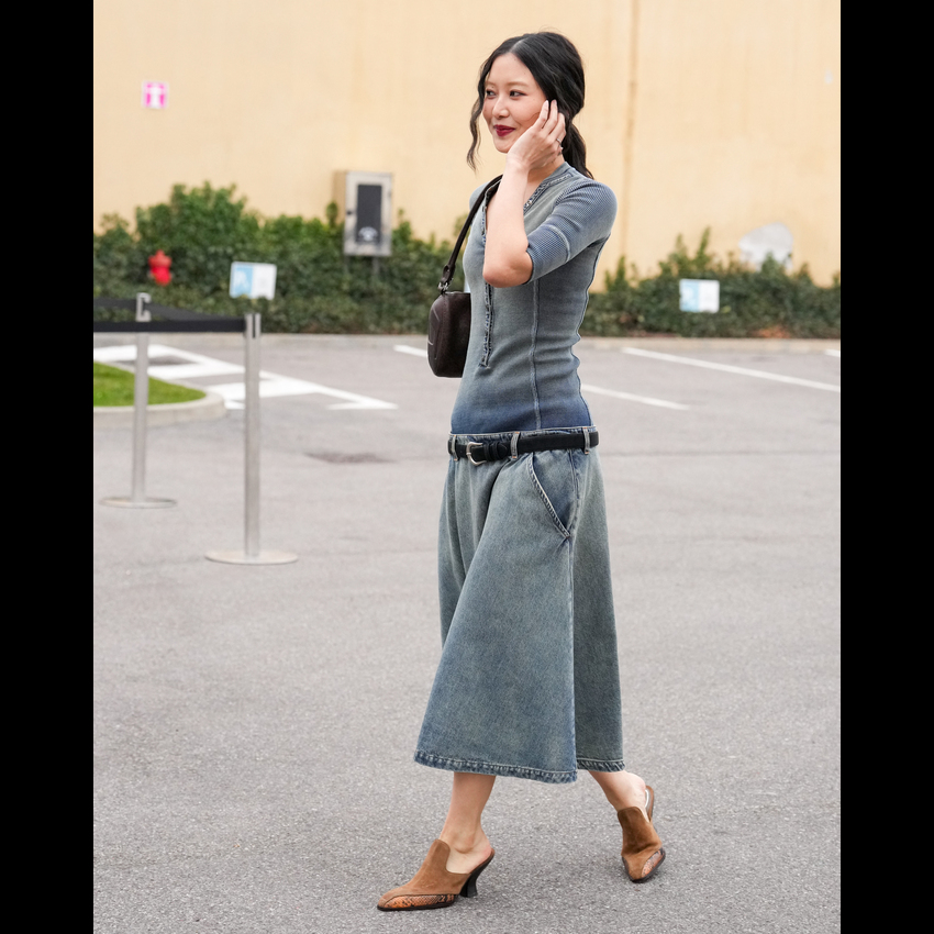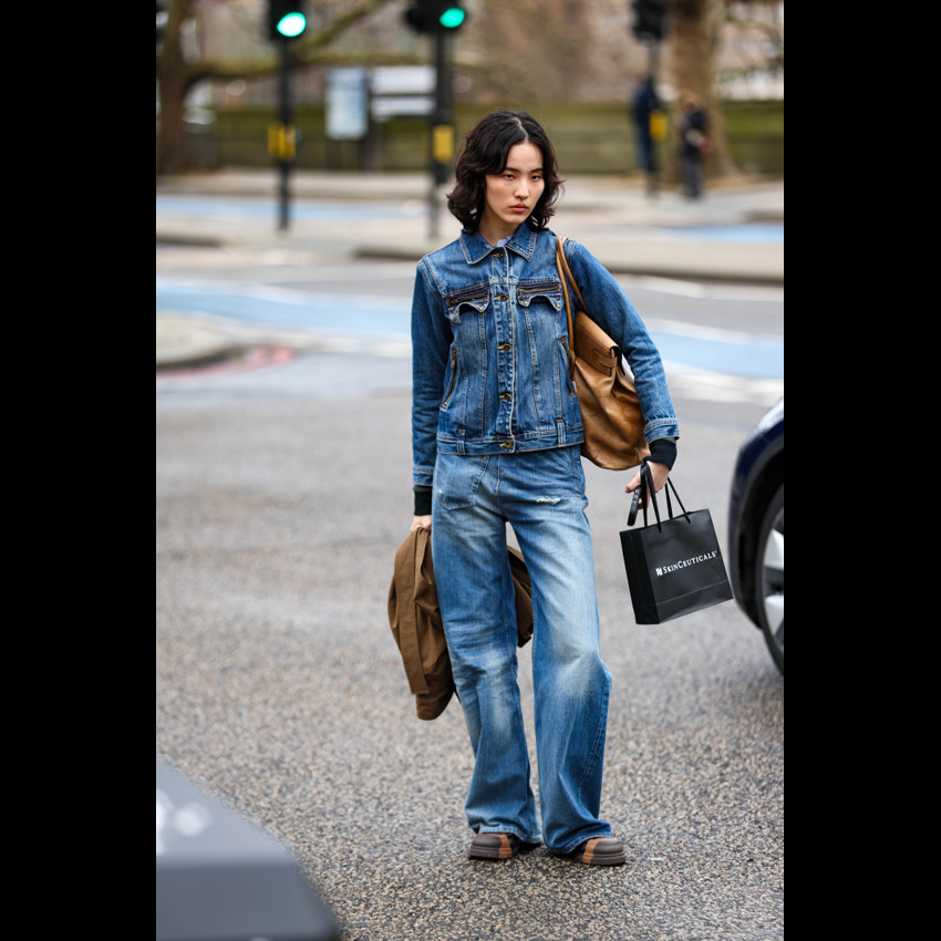 别再翻来覆去搭配了,今年春天,时尚圈最省心又最时髦的穿法,就是直接穿一套“全套牛仔”。从2026年春夏秀场到街头,这股丹宁风潮以更成熟的姿态强势回归。它不再是简单的复古,而是融合了现代剪裁的优雅——无论是直筒轮廓的干净利落,还是微喇裤型的流动韵律,都能让一身牛仔呈现出前所未有的高级感。 更妙的是,今年的牛仔色彩也告别单调,从深邃的靛蓝到柔和的樱花粉,为全套造型注入春日活力。不用费心思考上下搭配,一件牛仔外套配上同色系直筒裤,就能轻松穿出不费力的时髦态度,懒人也能美得很有层次。
