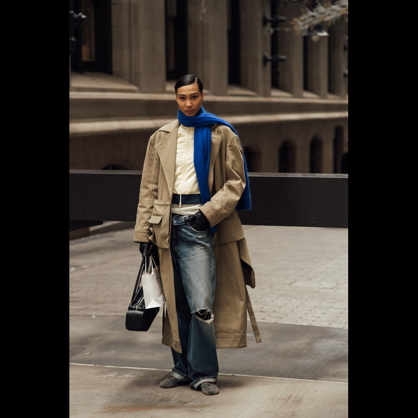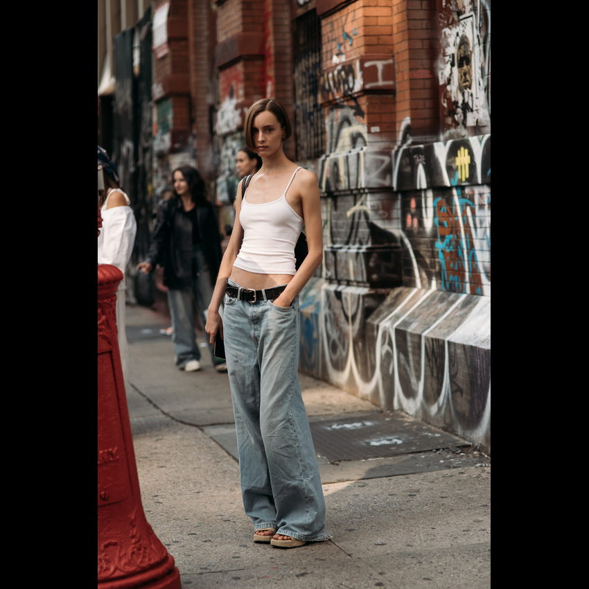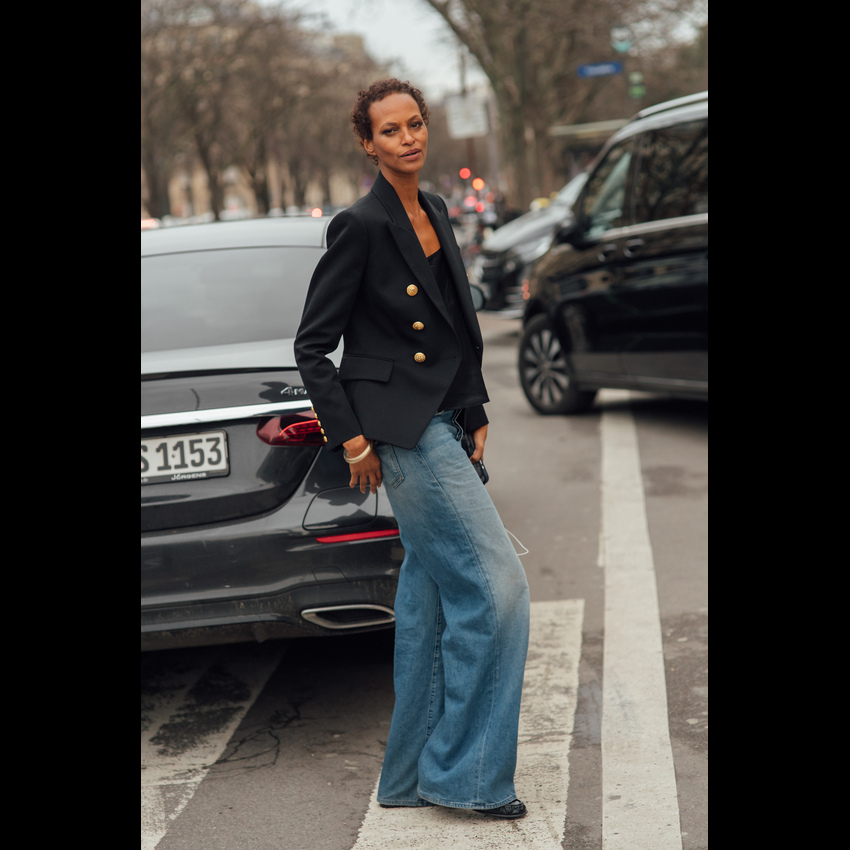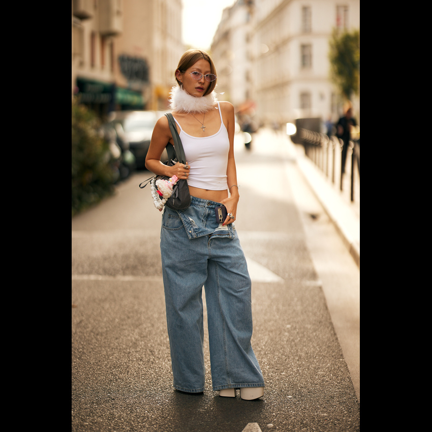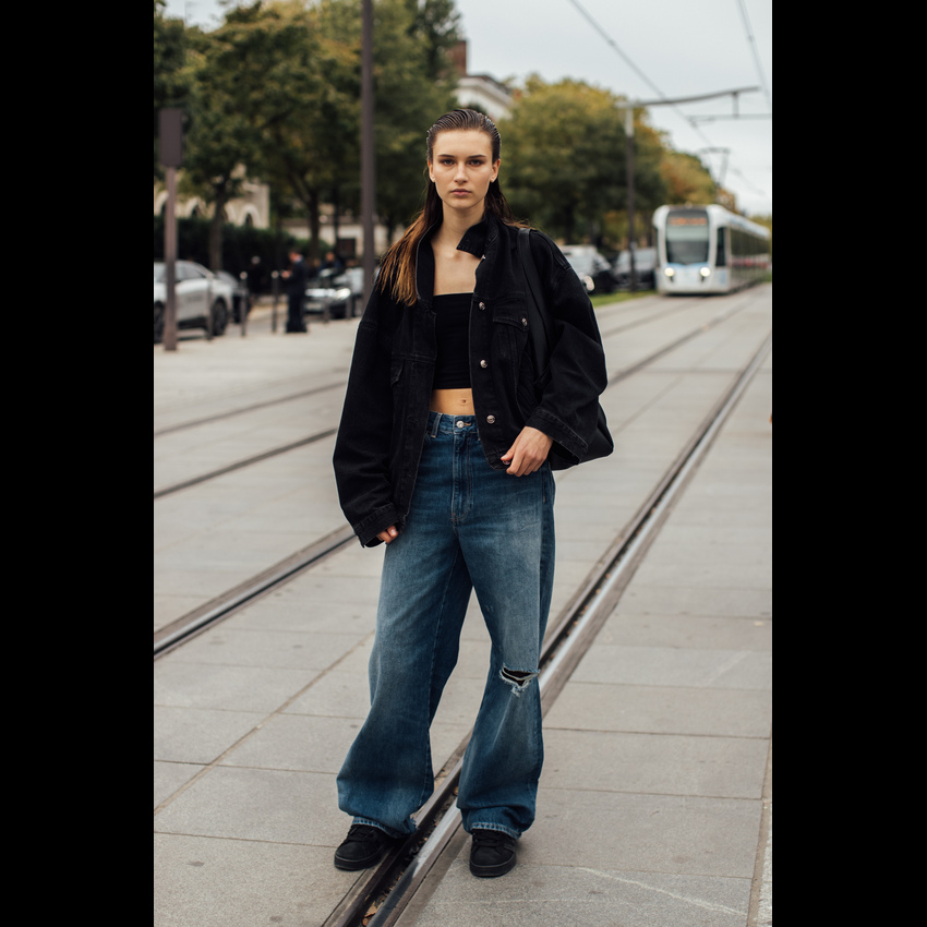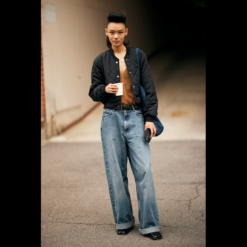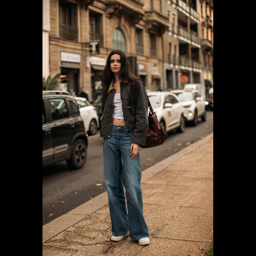 它完美契合了2026年春夏的松弛感风潮——宽大的裤腿随风摇曳,不刻意勾勒身材,却用最舒展的姿态诠释高级时髦。今年流行的阔腿牛仔裤,在剪裁上更注重垂坠感与结构感的平衡,无论是搭配紧身针织衫营造上窄下宽的经典轮廓,还是套上Oversize卫衣玩转慵懒街头风,都能轻松拿捏那种“毫不费力”的时髦。 更妙的是,它自带一种洒脱的中性气质,让穿上它的人瞬间多了几分随性与自信。阔腿牛仔裤的慵懒松弛感,刚好击中我们对舒适与帅气的双重向往。